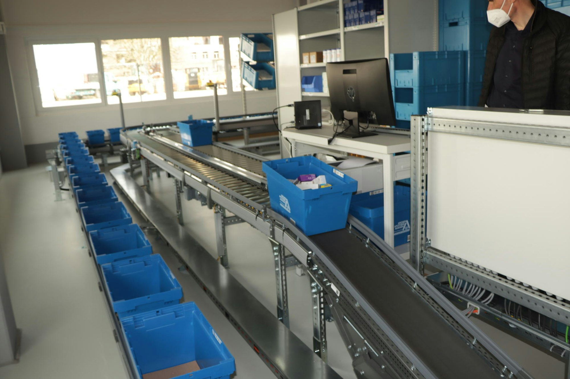 Im neuen Versorgungszentrum werden die zusammengestellten Bestellungen über Förderbänder transportiert.