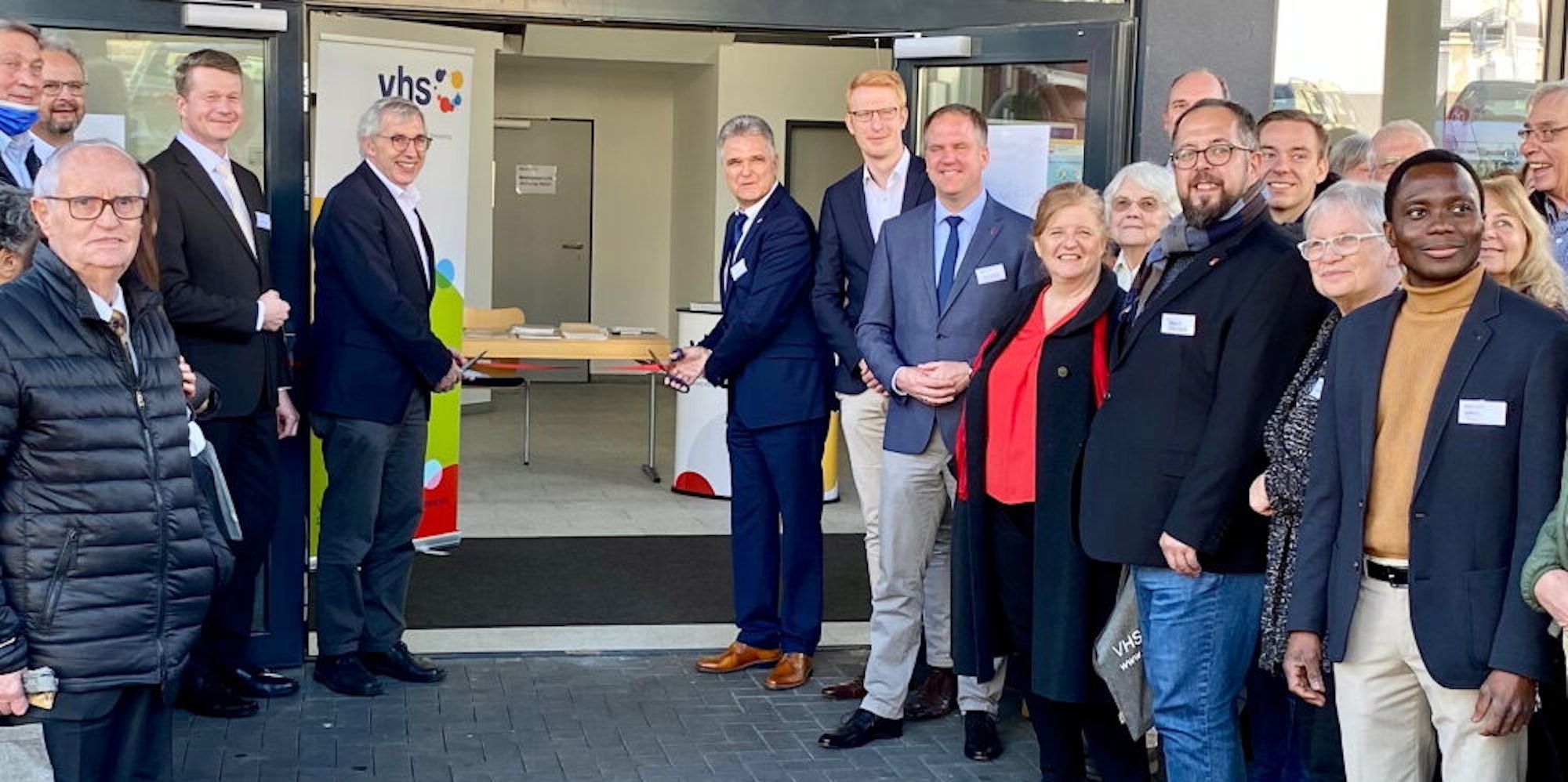 Dazu durchtrennte Bürgermeister Erwin Esser gemeinsam mit dem parlamentarischen Staatssekretär im NRW-Kulturministerium, Klaus Kaiser, und in Gegenwart von zahlreichen Dozenten symbolisch ein rotes Band am Eingang. „Wir haben hier eine schöne neue Bleibe geschaffen. Und wir wollen das Haus in Zukunft mit weiteren Akteuren zu einem Erwachsenbildungszentrum entwickeln“, betonte Esser. Die Anfänge für dieses Zentrum der allgemeinen und beruflichen Weiterbildung seien nun gemacht.