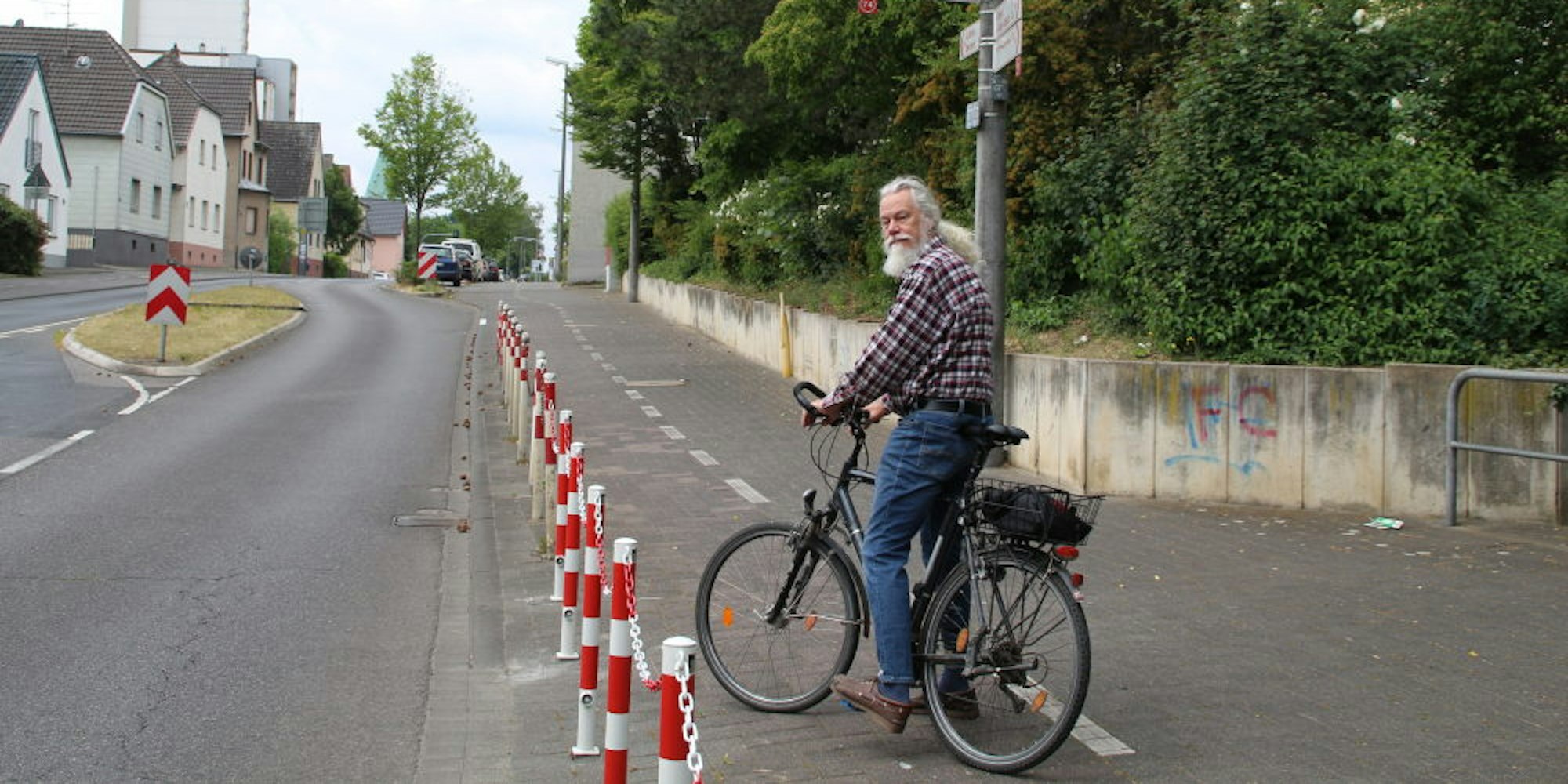Erich Hermans fordert eine Fahrradstraße. Seit einiger Zeit verhindern Ketten, dass Radfahrer hier die Straße kreuzen.