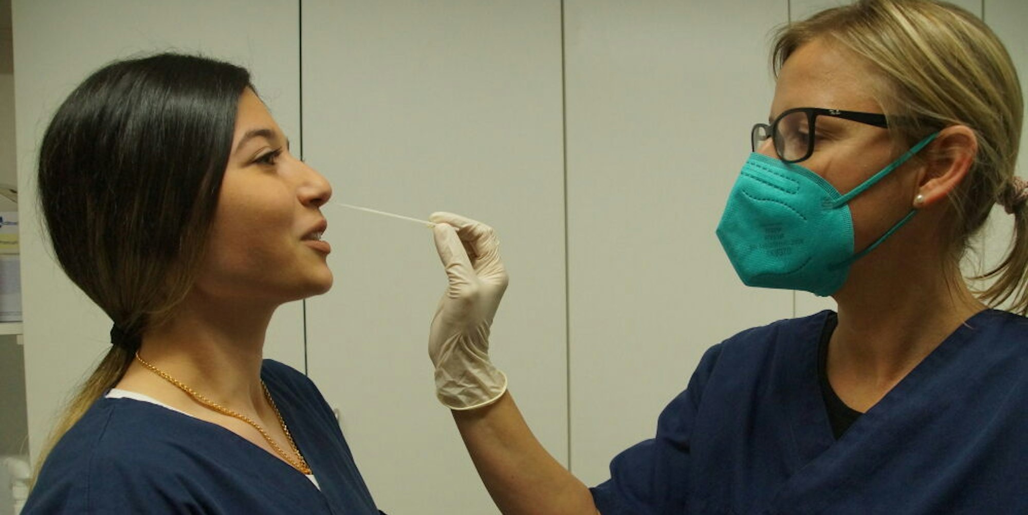 Auch Tanja Müller (r.) und Acelya Kamali müssen sich in der Gemeinschaftspraxis König 33 in Brühl täglich testen.