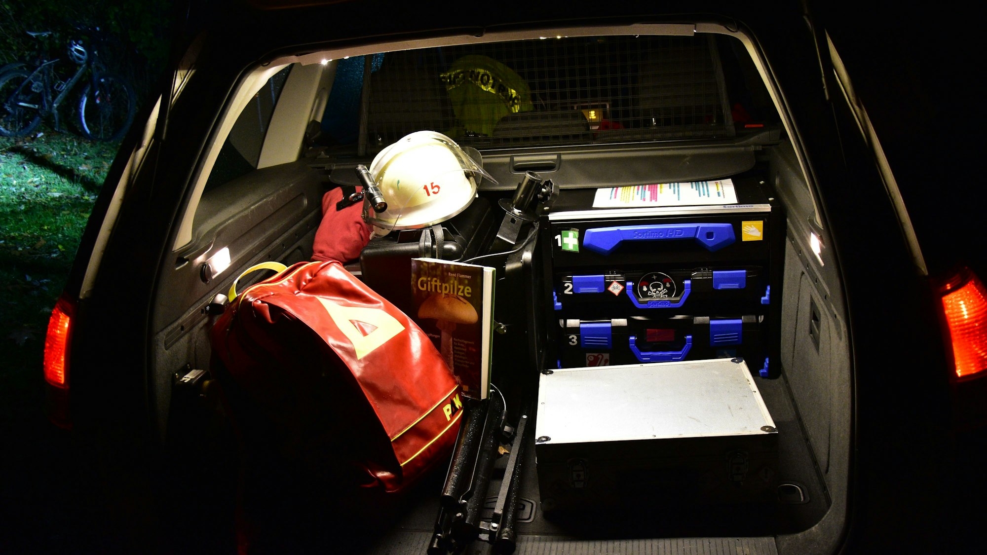 Chemikalien, ein Mikroskop, Literatur und Licht: Die Notfallausrüstung im Kofferraum wird ständig erweitert.
