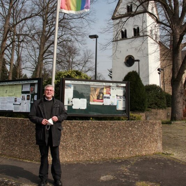 Mit dem Hissen der Regenbogenfahnen hat der Seelsorgebereich Sankt Augustin bereits vor einigen Wochen ein Zeichen gesetzt. Zunächst an der Kirche Sankt Martinus und am letzten März-Wochenende wehten die Fahnen an allen Kirchen des Seelsorgebereichs. „Der Pfarrgemeinderat und das Seelsorgeteam des Seelsorgebereiches Sankt Augustin teilen mit vielen anderen Christen das Unverständnis und Entsetzen über das Verbot der vatikanischen Glaubenskongregation aus Rom, homosexuelle Partnerschaften zu segnen“, hieß es damals in einer Pressemitteilung. Auch andere Kirchen im Rhein-Sieg-Kreis hissten die Regenbogenfahne. (que)