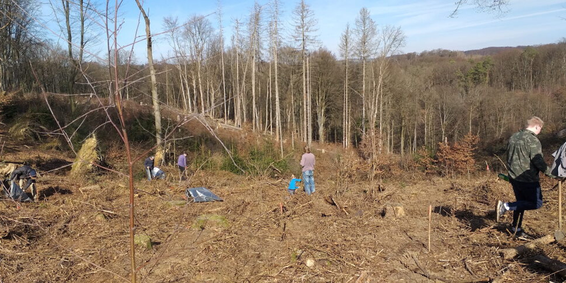 Die Trockenheit der vergangenen Sommer, der Borkenkäfer und auch Windbruch hatten dem Kirchwald sehr zugesetzt. Viele Bäumen waren abgestorben, einige schon umgekippt. Eine Fachfirma hatte im Auftrag des Presbyteriums die Flächen von Brombeerbewuchs befreit und für eine Neuanpflanzung vorbereitet. sehr, einen neuen Kirchwald für die kommenden Generationen angelegt zu haben und sind schon jetzt gespannt, wie er sich entwickeln wird“, beschreibt Scholz die Stimmungslage im Team.