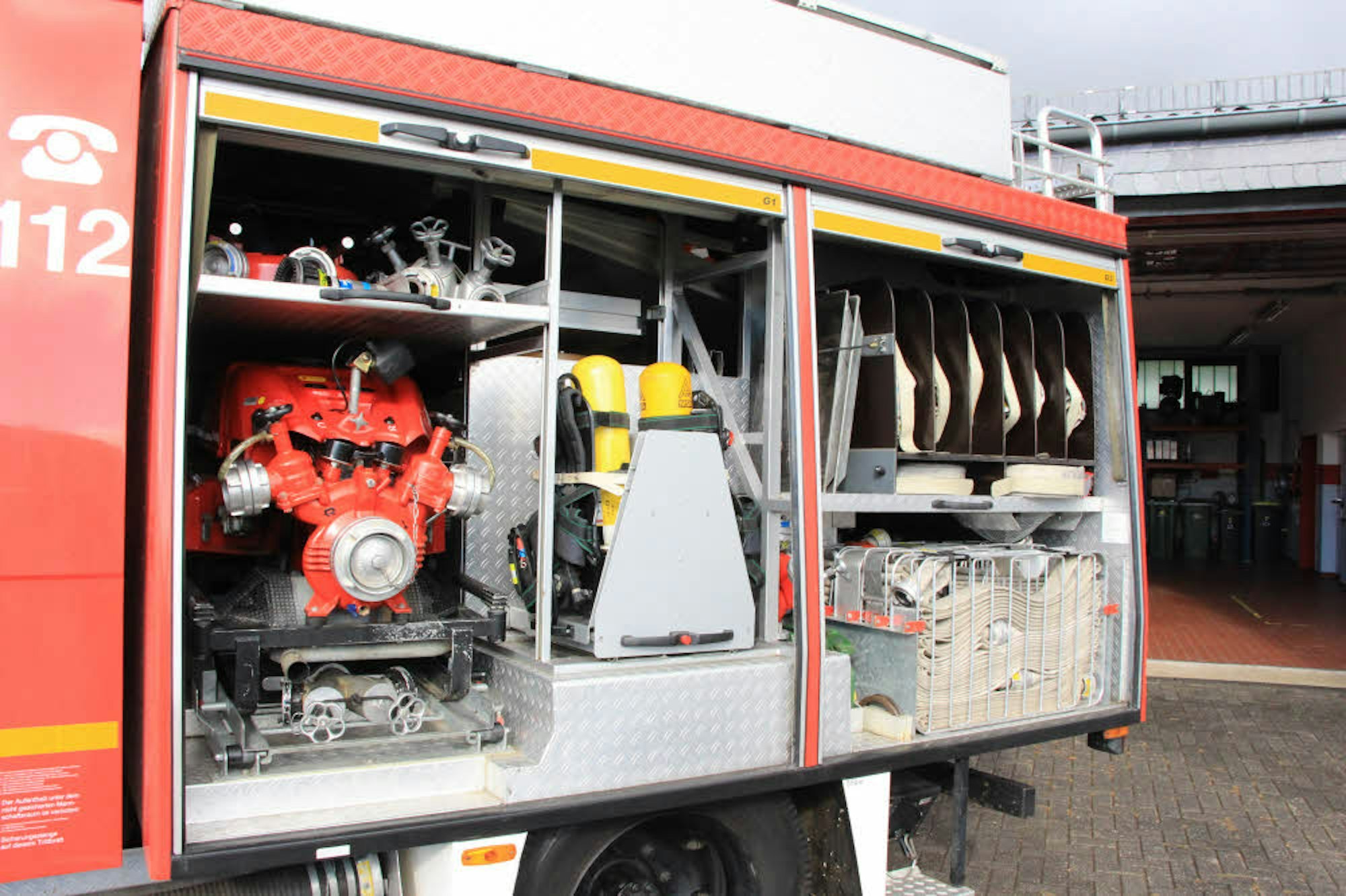 Viel Platz ist im Geräteraum des Löschfahrzeuges, das jetzt für mindestens 12.000 Euro zum Verkauf steht.