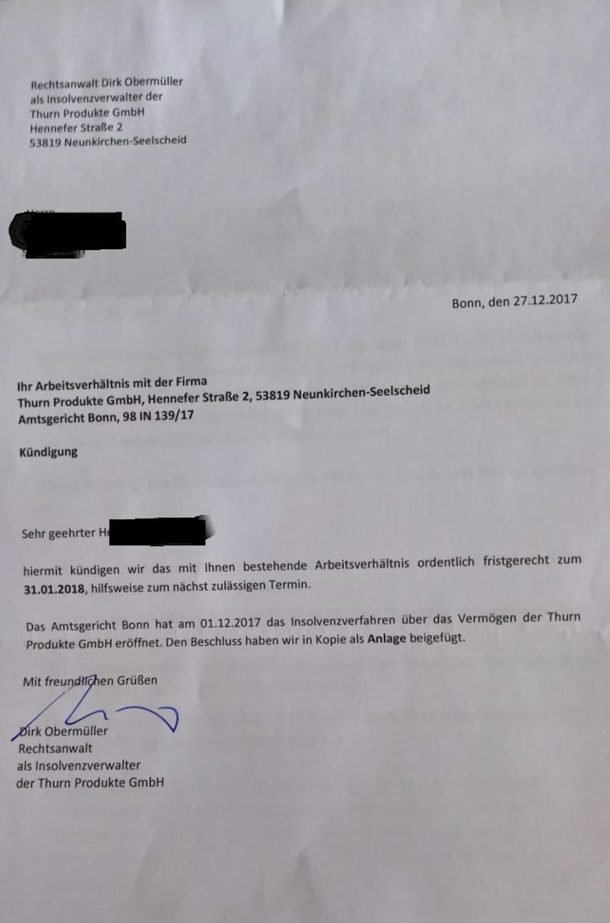 Neunkirchen-Seelscheid – Für die Mitarbeiter der Firma Thurn war es dieses Jahr kein schönes Weihnachtsfest. „Wir wurden am letzten Arbeitstag vor Weihnachten um 14 Uhr auf einer Betriebsversammlung informiert, dass wir alle hier am Standort die Kündigung erhalten werden“, berichtete ein Mitarbeiter aus Neunkirchen, der Bedenken hat, seinen Namen in der Zeitung zu lesen. „Es lagen Formulare bereit, mit denen wir uns arbeitssuchend melden konnten.“