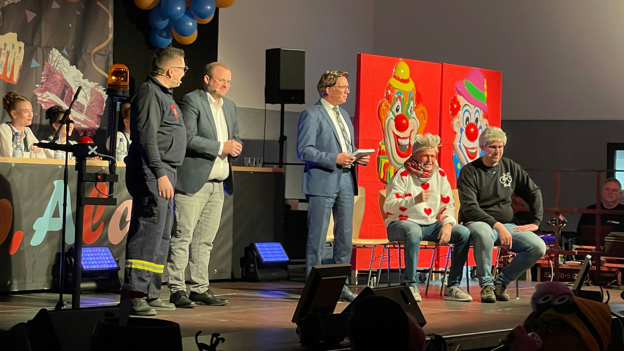 Das Bürgermeister-Original, das mit einem dreifachen Halleluhja begrüßt wurde, nahm's mit Humor. Der Döörper Prätscher Hans-Peter Hohn hatte schließlich gleich klargemacht, dass auf der Karnevalsbühne nur einer was zu lachen hat: Der jecke Saalknubbel. Denn nicht nur das neue Gemeindeoberhaupt aus „Honger Kuchem“, wie der Prätscher Jedichs Wohnort Winterscheid nennt, war im Visier: Auch die geschrumpfte SPD-Fraktion, das einzige FDP-Mitglied und die beiden Grünen im Rat („Die spüren das Artensterben nun am eigenenLeib“) bekamen einen ab.