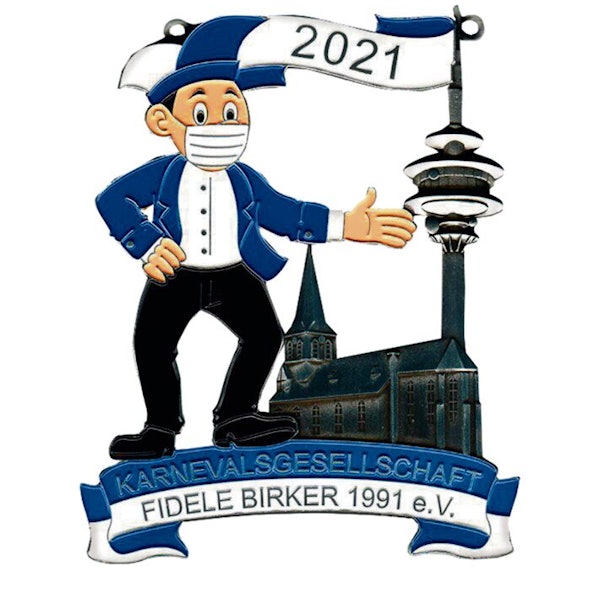 „Op Avstand jonn – zosamme stonn!“ Dazu rufen die Siegburger Funken Blau-Weiß auf ihrem Sessionsorden auf, der dank eines ausgeklügelten Mechanismus’ das Zeug dazu hat, eines Tages im Corona-Museum zu landen. Zwischen einem Funkemariechen und seinem Tanzoffizier zeigt ein Maßband den obligatorischen Abstand von 1,50 Meter an. Nun kann man das Mariechen zwar zum Tanzoffizier schieben, aber dann sorgt ein Magnet sofort dafür, dass der korrekte Abstand wieder hergestellt wird. Tolle Idee!