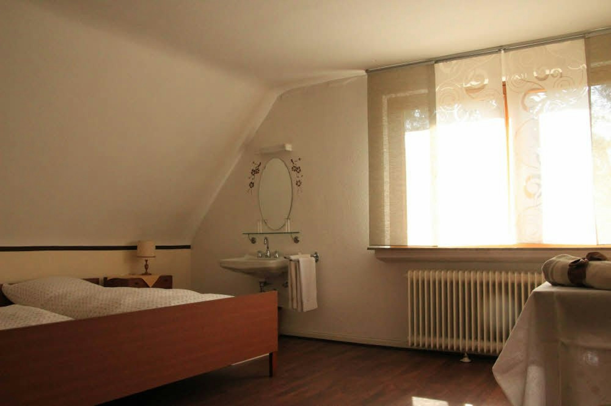 Fünf Doppel- und zwei Einzelzimmer hat das angeschlossene Hotel, auch die Einrichtung ist reichlich in die Jahre gekommen.