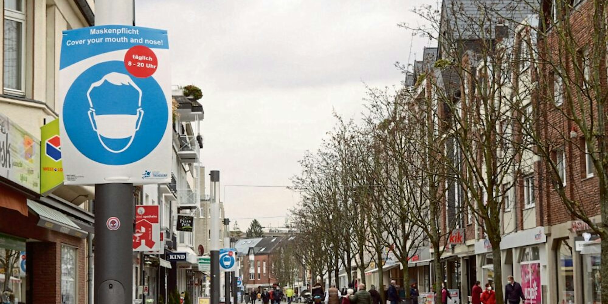 Nur wenige Kunden waren am Mittag in der Troisdorfer Fußgängerzone.