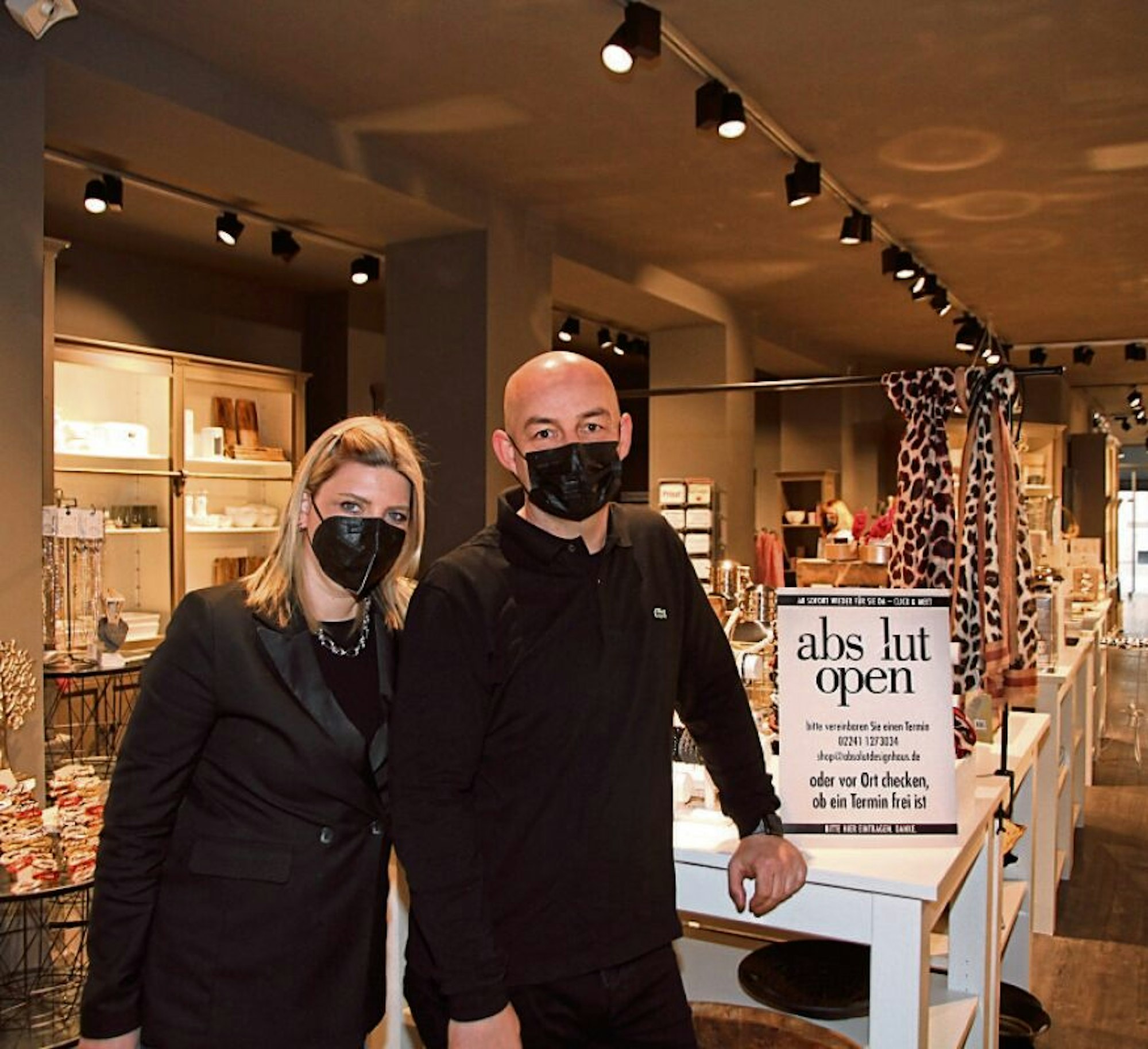 In der Buchhandlung durften sich gestern noch bis zu 20 Kundinnen und Kunden aufhalten. Freiwillig hatten Madel und Mitgeschäftsführerin Julia Bank diese Zahl auf zwölf reduziert, ab morgen sind nur noch fünf Besucherinnen und Besucher gleichzeitig erlaubt. „Wir begrüßen die Gleichstellung sehr“, sagte der Vorsitzende des Siegburger Verkehrsvereins, Sissis Vassiliadis, während der Stunden, in denen seine Frau Mona Vassiliadis das Schild für die Terminbuchung aus dem Schaufenster des Design-Hauses „Absolut“ holen konnte. Bei den meisten anderen Geschäften in der Kreisstadt klebten die Beschränkungshinweise derweil nach wie vor an den Scheiben. Im Kaufhof hatten die Mitarbeiter noch keine offizielle Anweisung von der Zentrale und registrierten daher weiter die Kundschaft.
