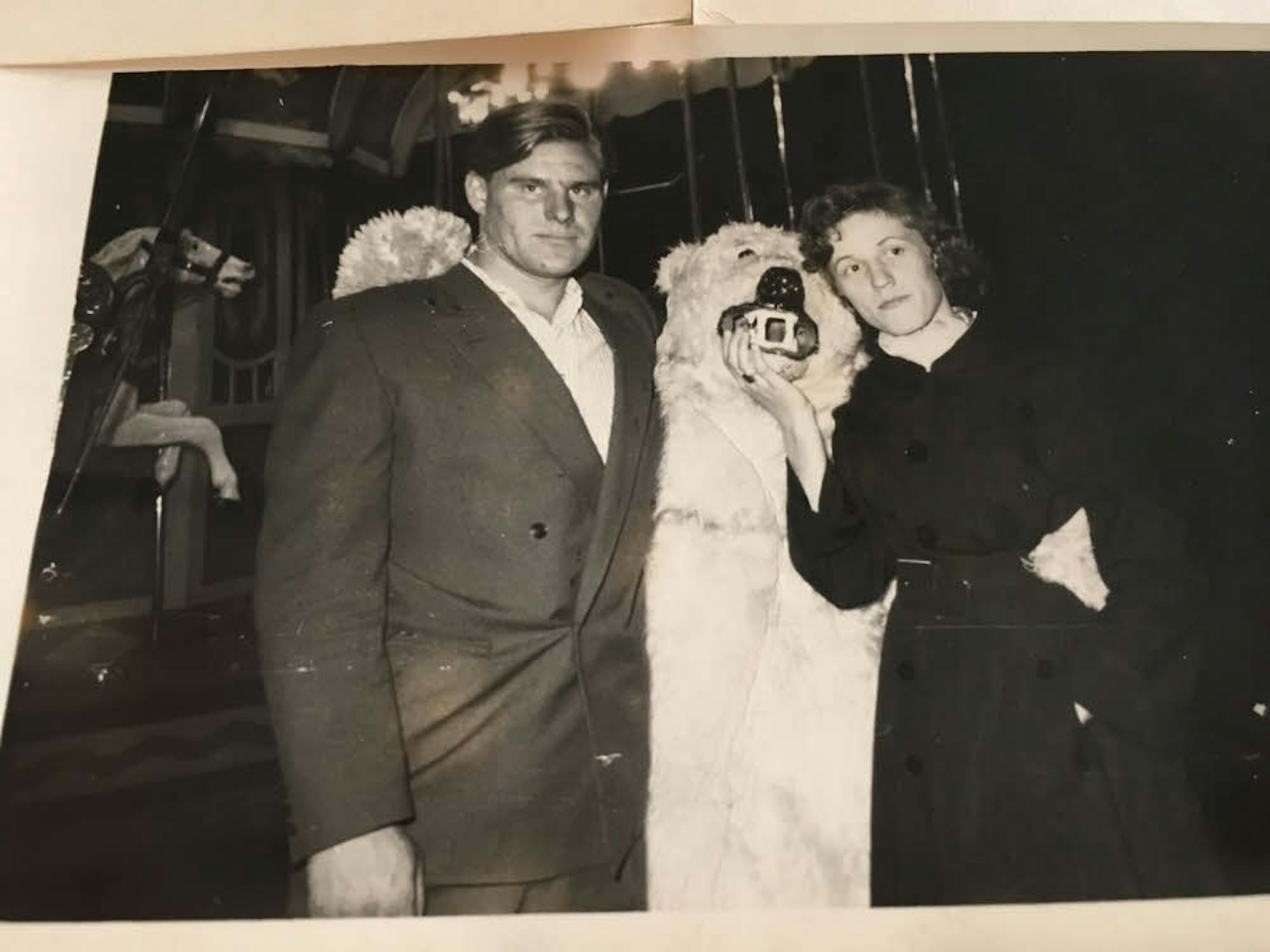 Josef und Amalie Liebe ließen sich 1962 auf der Eitorfer Kirmes mit der Puppe eines Eisbären fotografieren – damals eine gefragte Attraktion.