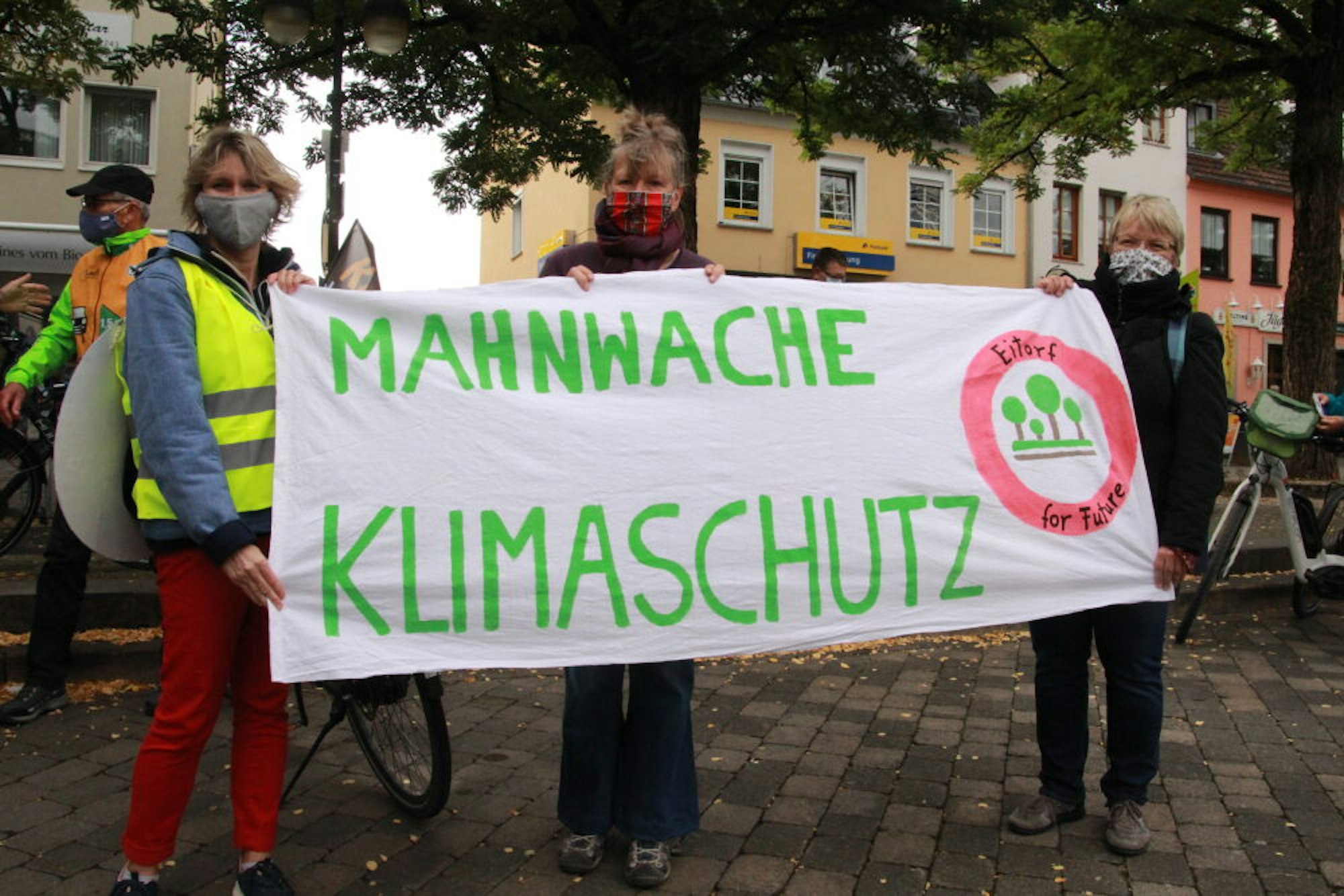 Steht jetzt jeden Freitag auf dem Marktplatz: Die Gruppe „Eitorf for Future“ von Birgit Leblanc, Elisabeth Quitmann und Miriam Busch.