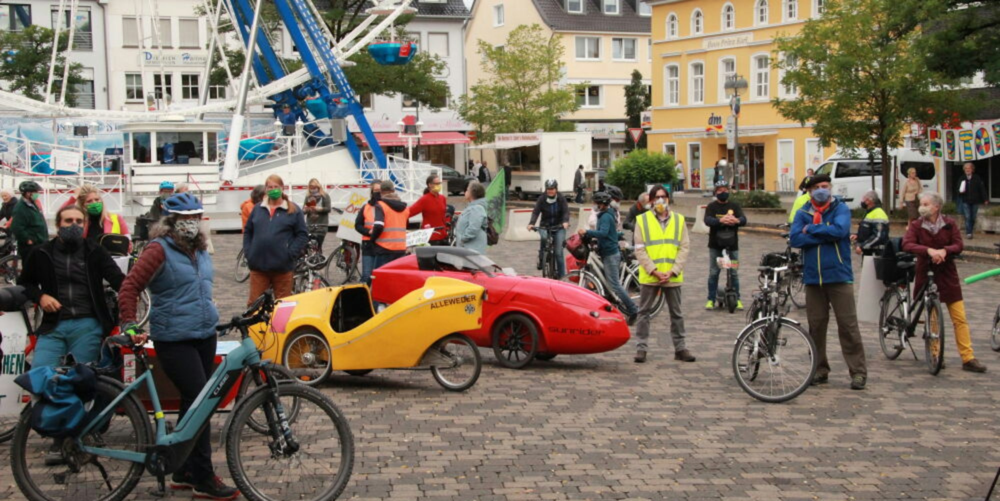 - Rund 80 Demonstranten sind auf dem Marktplatz zusammengekommen, um eine Verkehrswende zu fordern