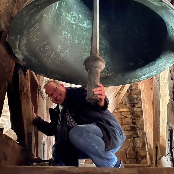 Die Ausschussmitglieder sahen sich nicht nur im Hauptraum des zwölfeckigen Kirchengebäudes um, von dem sie beeindruckt waren. Sie besichtigten auch den Kirchenkeller, in dem nach Regenfällen schon mal Wasser steht. Bürgermeister Viehof hatte deshalb extra Gummistiefel mitgebracht, brauchte diese aber nicht. Denn die Kellerräume waren an diesem Tag trocken. Ein Kirchenmitarbeiter zeigte allerdings, wie hoch das Wasser nach Regenfällen zuletzt gestanden hatte.