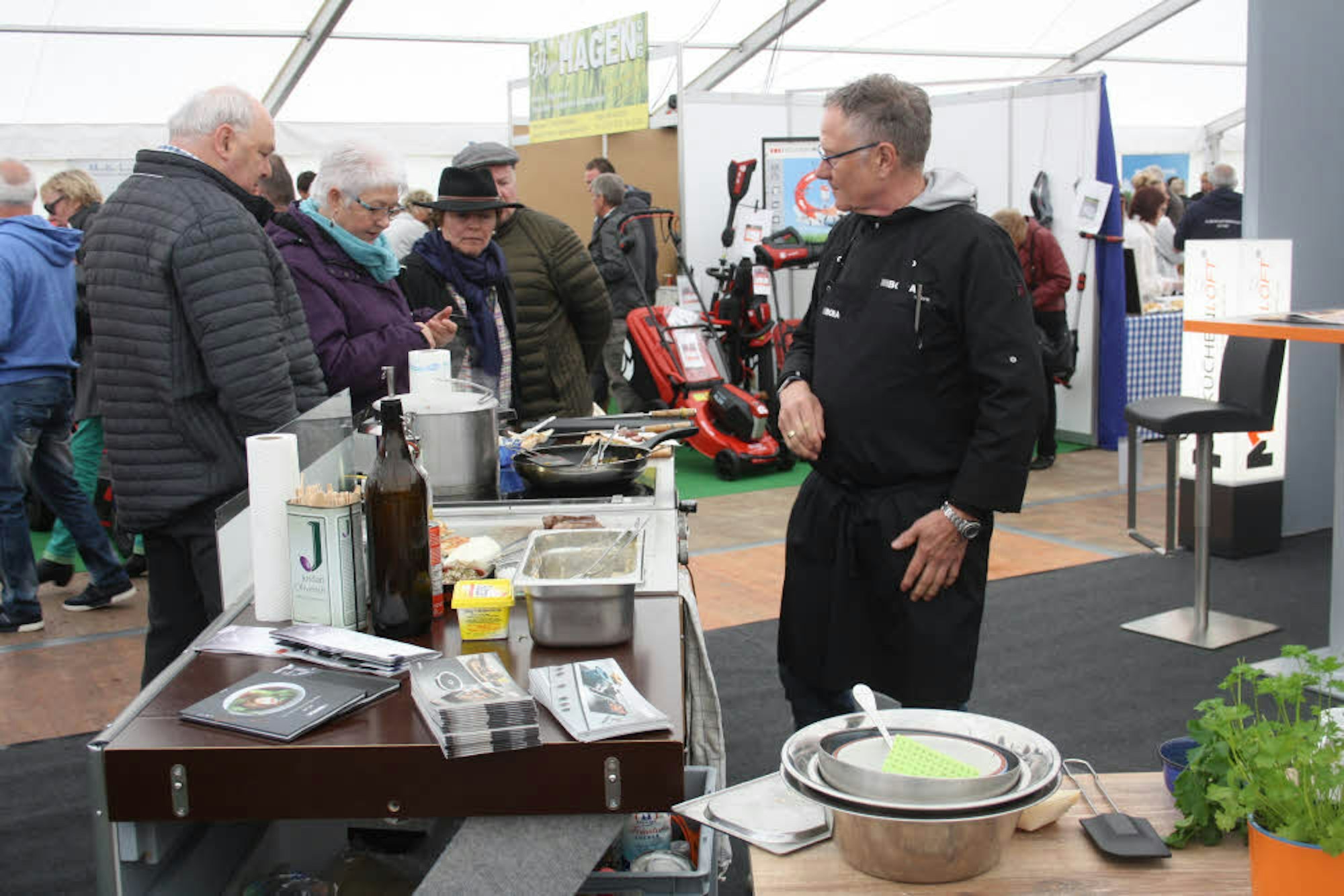 Eitorf – Hier schlagen nicht nur Männerherzen höher: Die Stände mit Rasenmähern und Grills gehören beim Eitorfer Frühling seit Jahren zu den Publikumsmagneten, an denen sich das interessierte Publikum knubbelt. Das war auch bei der diesjährigen Auflage der Leistungsschau von Handel, Handwerk und Dienstleistern aus der Region am vergangenen Wochenende nicht anders, zumal immer wieder ein kleiner Regenschauer die Besucher aus dem Außenbereich in das große Zelt auf dem Marktplatz trieb.