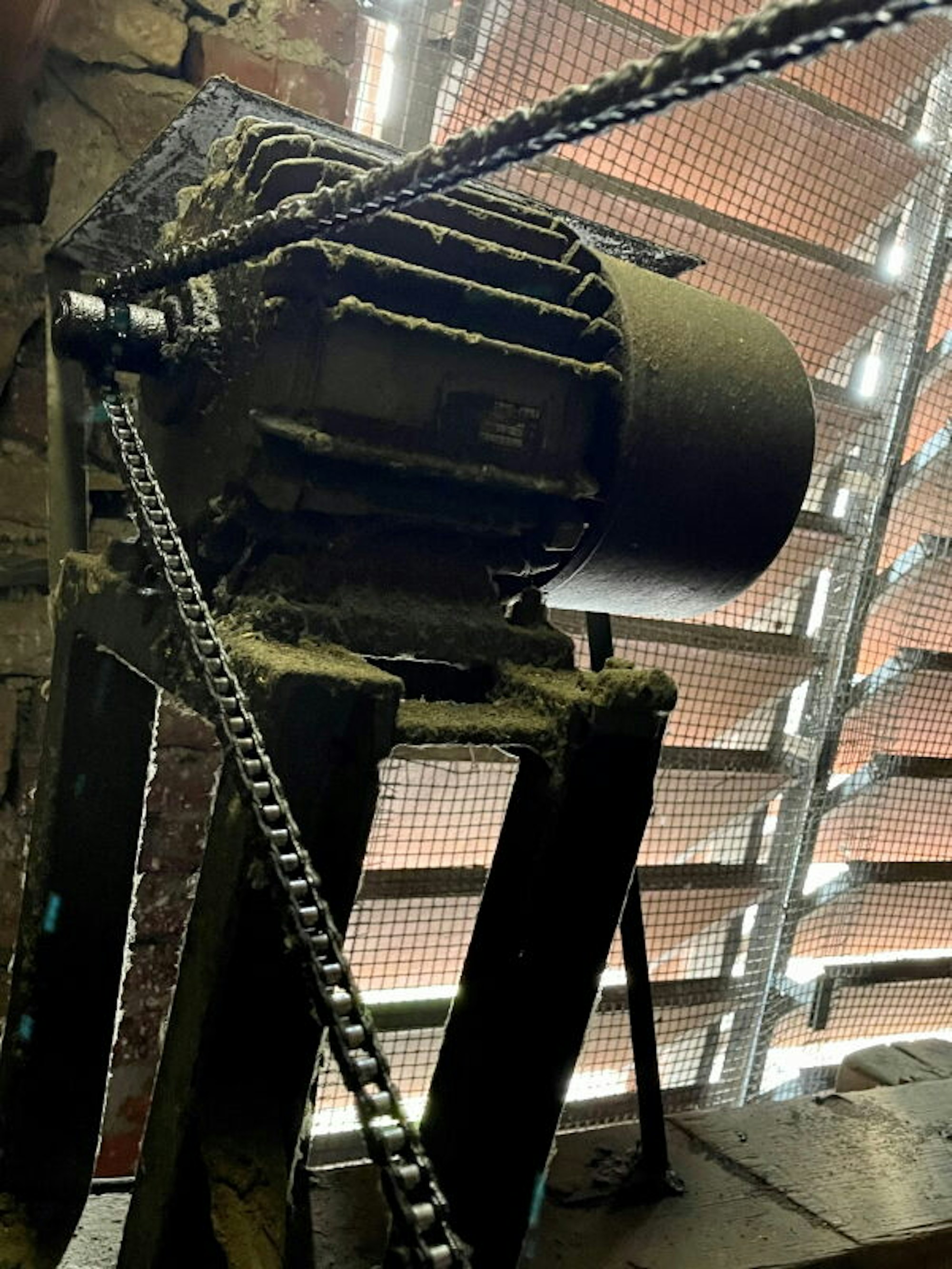 Kettenantrieb der Glocken, die man früher mit dem Seil läutete.