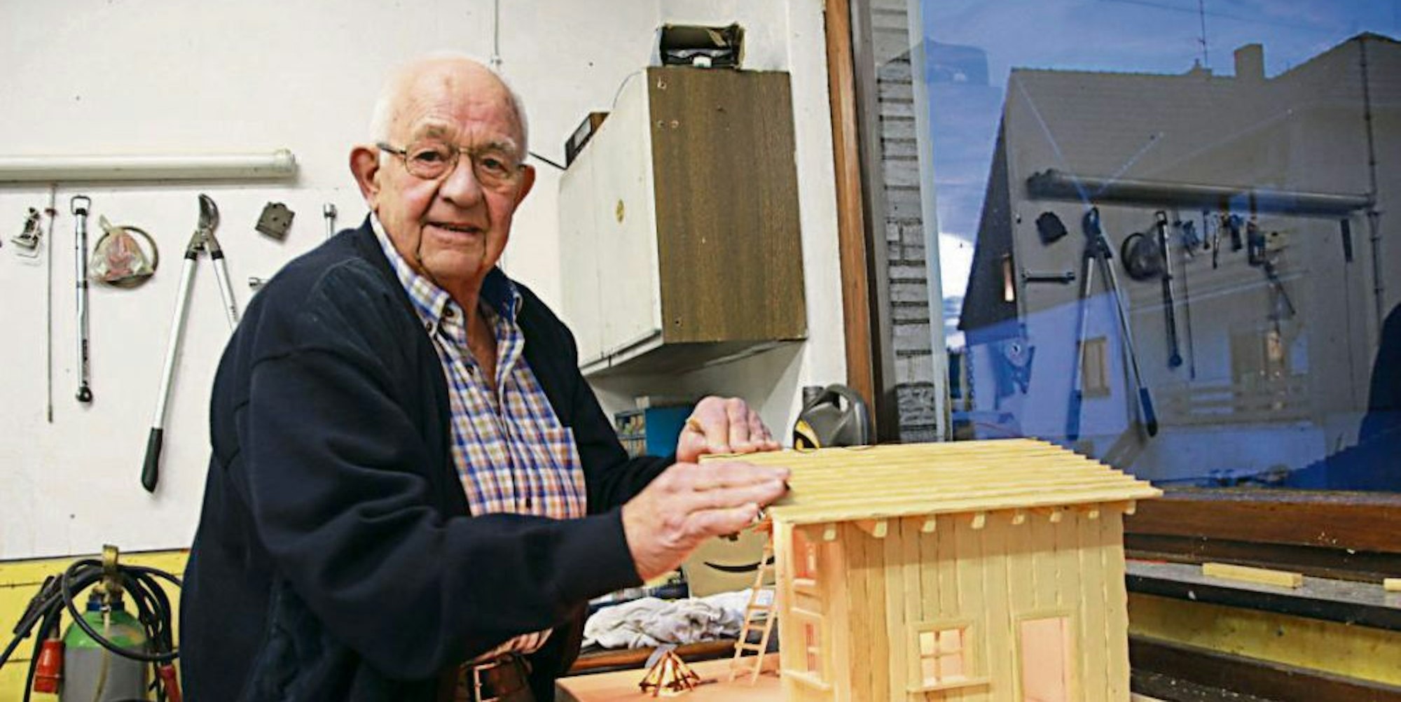 Seit dem Sommer baut er eine Krippe für die dritte Enkelin Christin und ihre erste eigene Wohnung. Ein zweistöckiges Holzhaus mit Sprossenfenstern und Leiter. Mit Schleifpapier glättet er das Dach, „da kommt noch Farbe drauf, Stroh fehlt auch noch“. Auch für die beiden Enkelsöhne will der 86-Jährige Krippen bauen, wenn sie einmal von zu Hause ausziehen. „Jungs sind ja später dran . . .“
