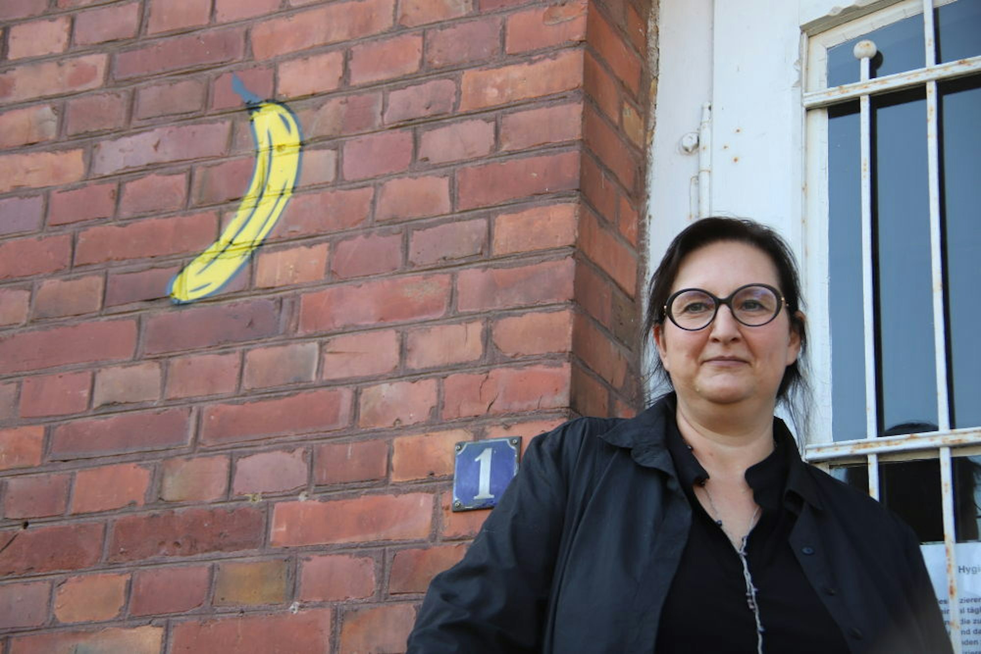 Thomas Baumgärtel sprühte seine Banane neben den Eingang der Galerie „Incontro“, wo er bis zum 15. August ausstellt.