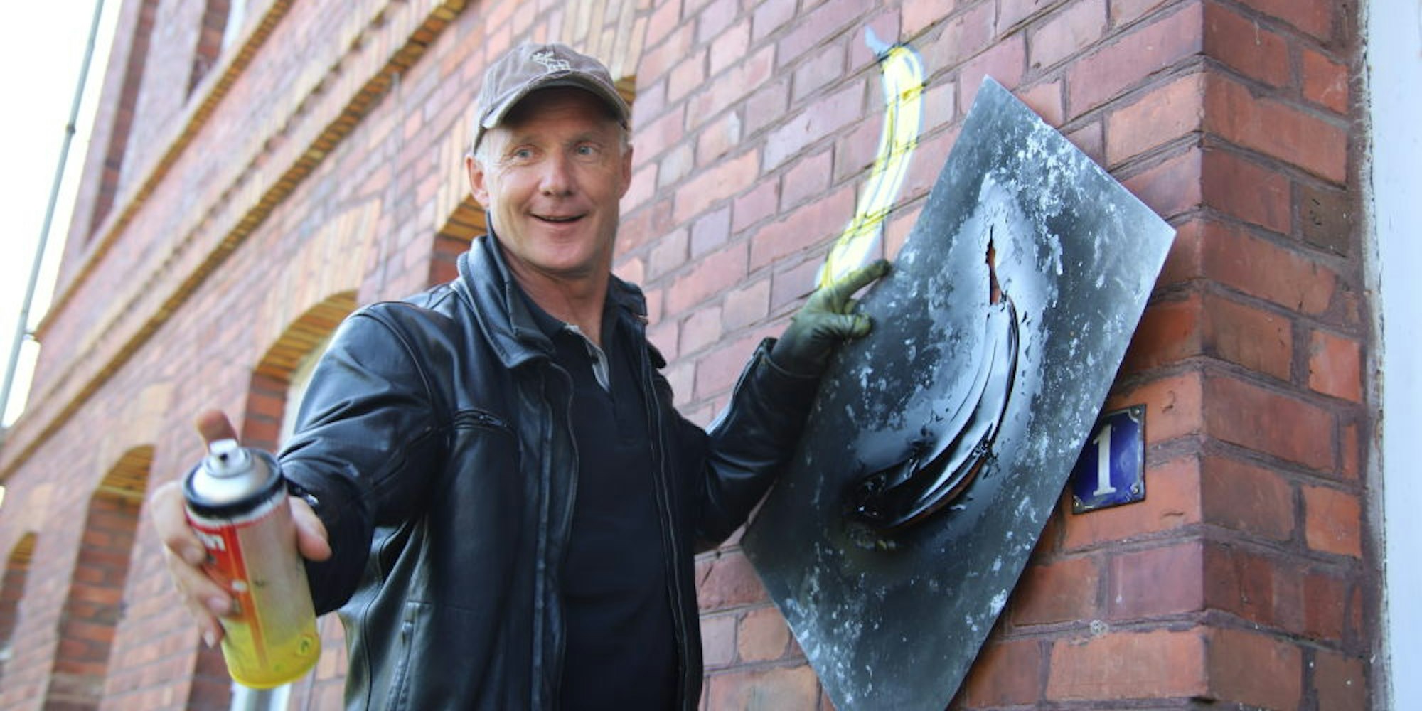 Eitorf – Jetzt hat Carmen Vetere auch eine Banane, original gesprüht von Thomas Baumgärtel. Der Kölner Künstler besuchte ihre Galerie „Incontro“ in der alten Zigarrenfabrik an der Schümmerichstraße 1. Ab dem Wochenende läuft dort die Ausstellung „German Urban Pop Art“ mit einer umfangreichen Auswahl der Werke des Bananensprayers – eine von insgesamt 27 Einzelausstellungen des 60-Jährigen in seinem Ausstellungszyklus 2019/2020.