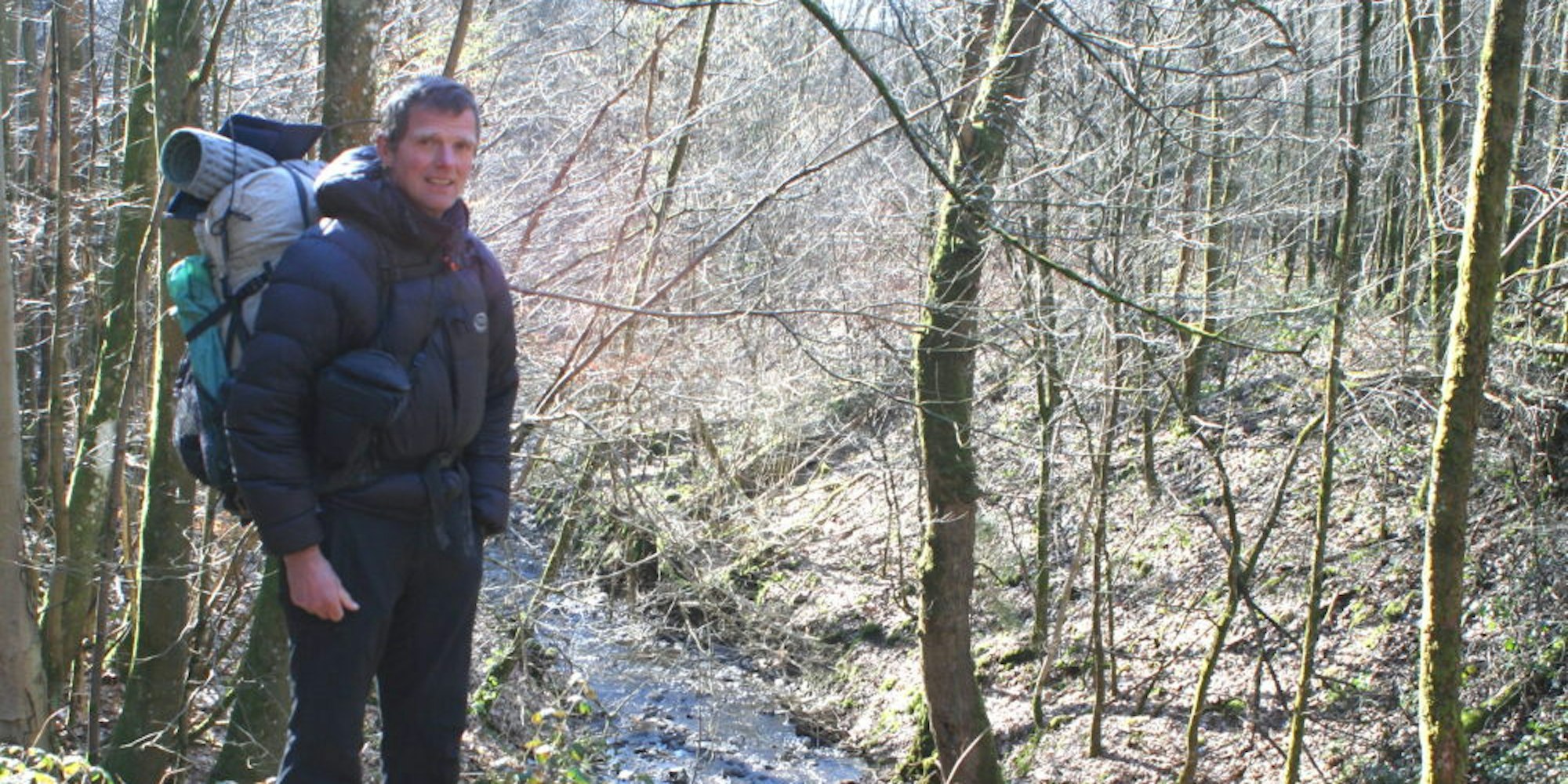 Gestartet war er in Marburg. Am zehnten Tag seiner Wanderung folgte er jetzt dem Nutscheid-Höhenrücken durch Windeck und Eitorf. Dort traf er sich mit der Gruppe „Wald mit Zukunft“ vom Eitorfer Klimatreff, die von seinem Projekt erfahren hatte. Auf Wunsch von Carmen Ulmen und ihren Kollegen hatte er Eitorf zusätzlich in seine Wanderroute eingeplant.