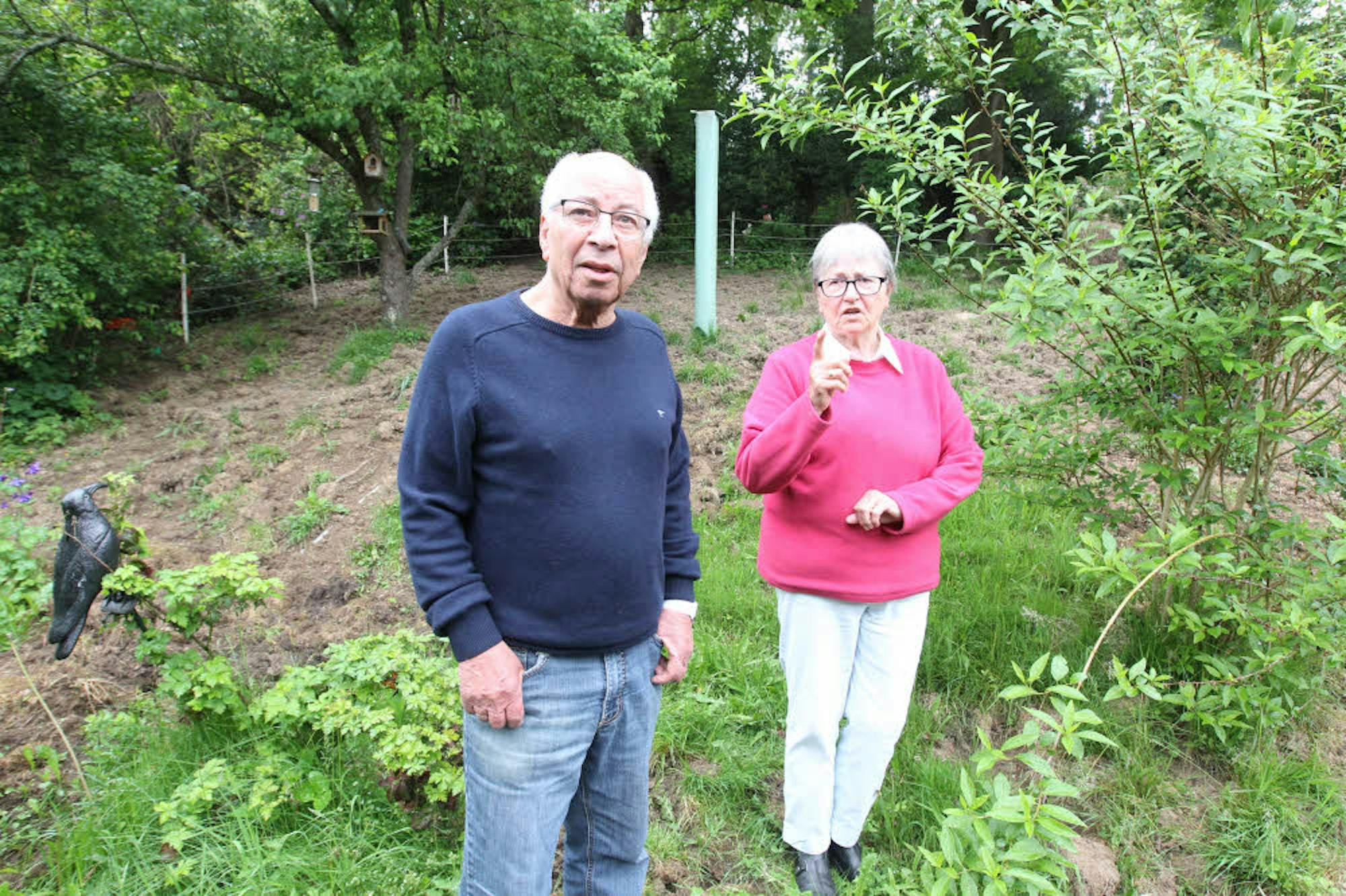 - Renate und Hassan Amer blicken fassungslos auf ihren Garten.