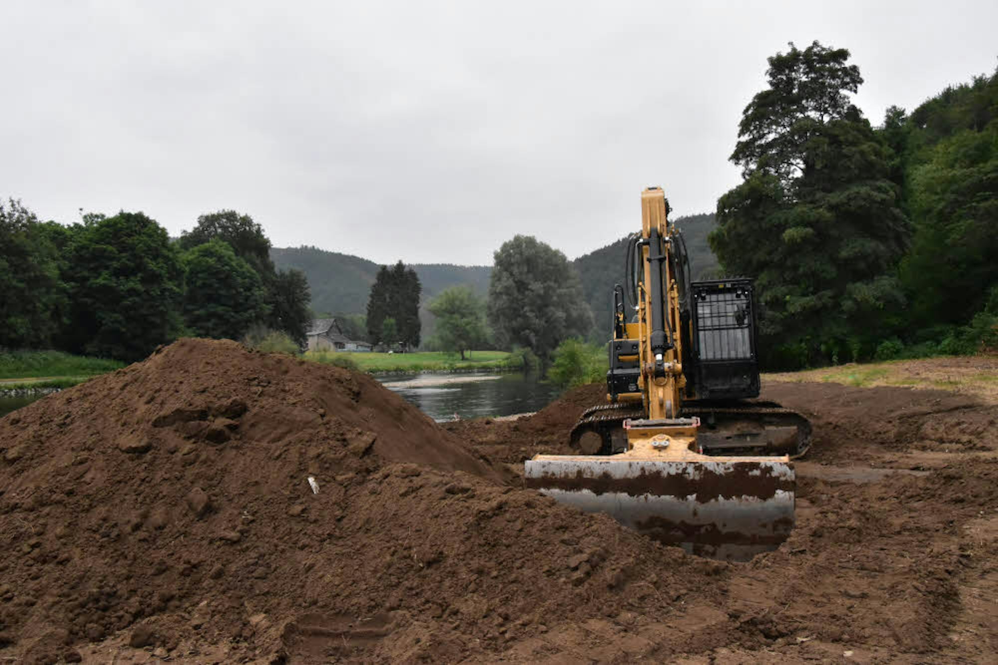Erde wurde am Ufer abgebaggert und wenige Meter weiter am Rand des Tales wieder aufgeschüttet.
