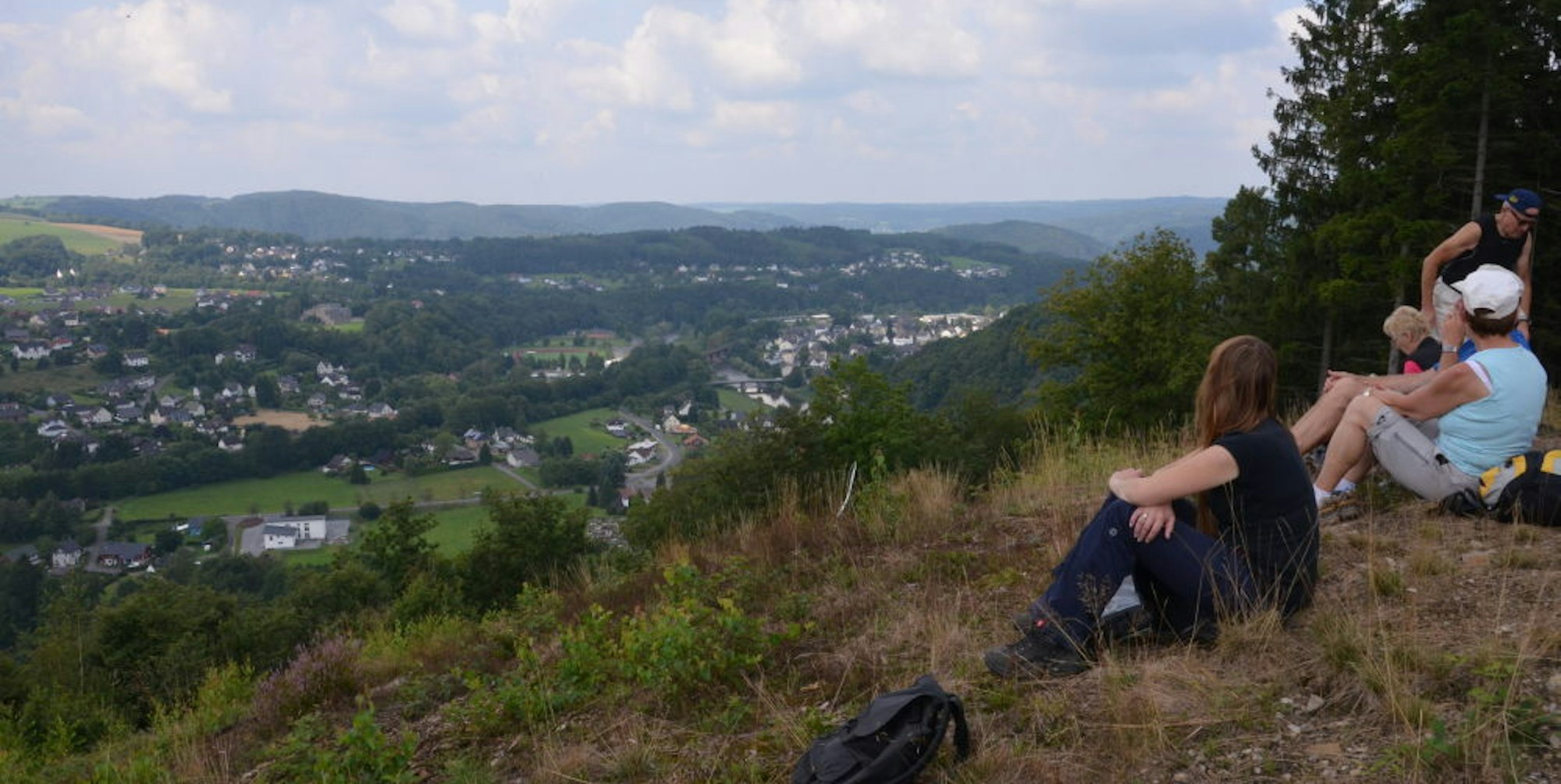 Weit über die Sieg hinaus bis hinein in den Westerwald kann den Blick schweifen lassen, wer am Alten Stuhl bei Windeck-Hurst rastet.