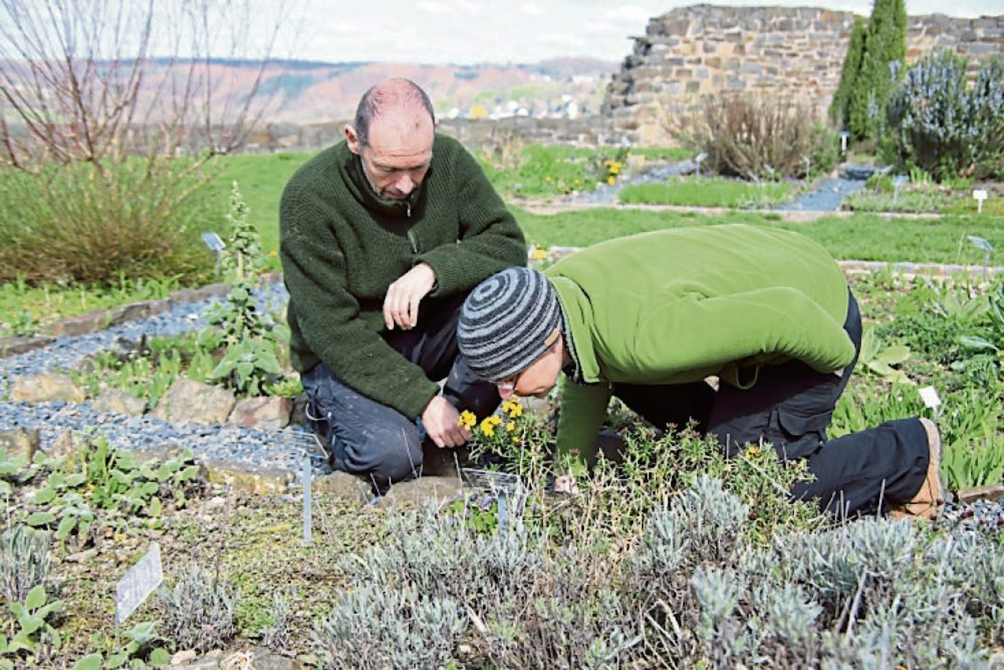 Susanne und Alexander Heyd müssen jetzt behutsam Hand anlegen. Das Ehepaar aus Heisterschoß hat die so genannte Bastionsfläche von Anfang an mitgestaltet. Nachdem die Stadt das Burggelände erworben hatte, ist viel Geld in die Sanierung geflossen. Dazu gehörte die Freistellung von Teilen der Mauer, der Bastionsturm wurde sandgestrahlt. Solche Eingriffe in die Natur sind ausgleichspflichtig.