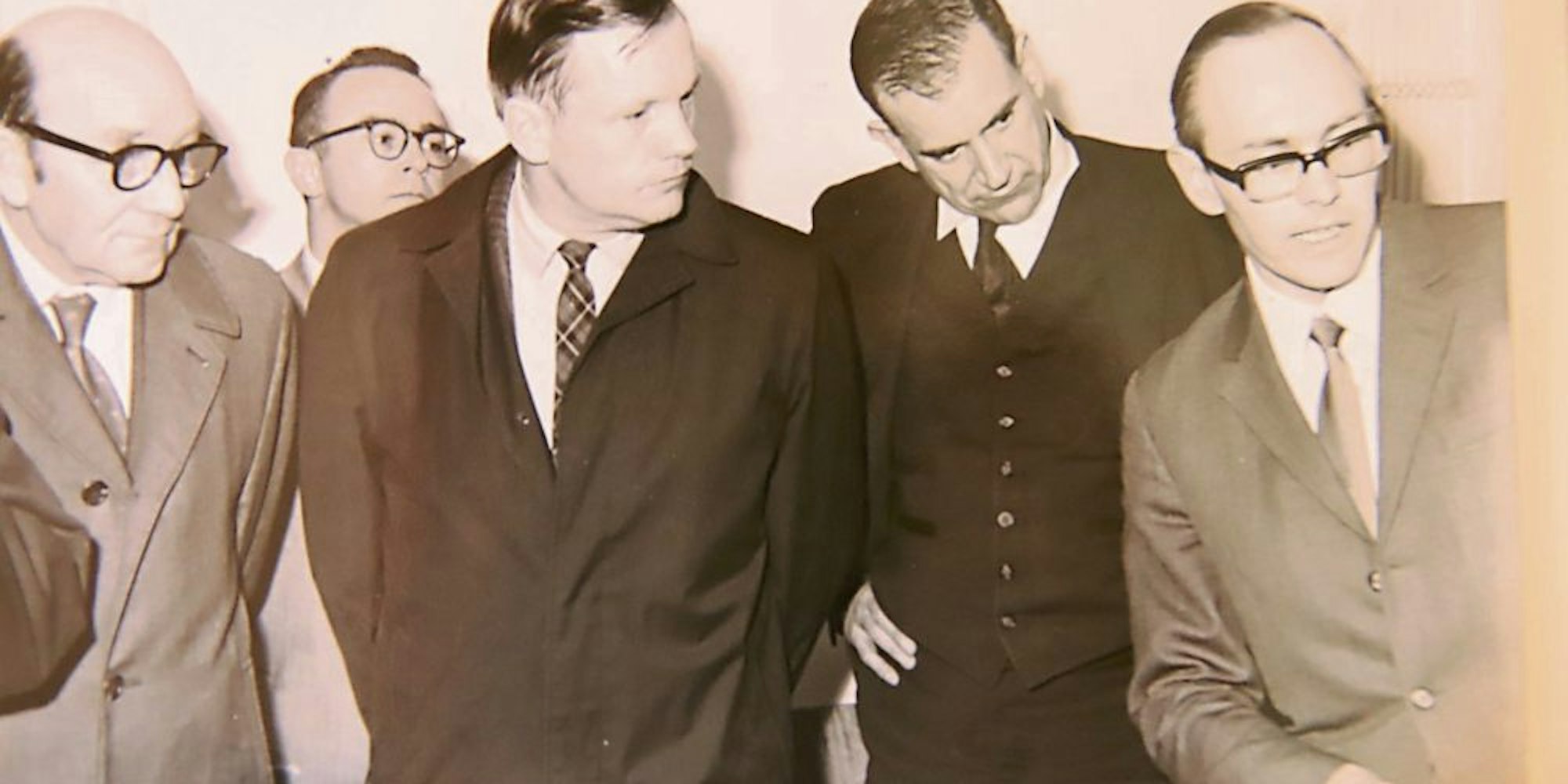 Hans Starken (r.) zeigte 1969 Neil Armstrong (vorn links) den Prüfstand seines Windkanals in Köln-Porz.