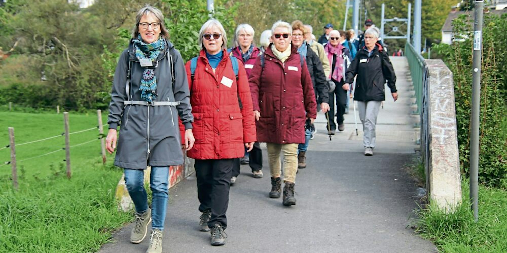 Zwei bis drei Mal im Jahr treffen sich trauernde Menschen, erklärte Christiane Bock, hauptamtliche Koordinatorin beim „Lebenskreis“, um ein Stück des Trauerwegs gemeinsam zu gehen, wortwörtlich. „Sie können ins Gespräch kommen und sich austauschen mit anderen, die in einer ähnlichen Situation sind“, so Bock. Nach der Überquerung der Fußgängerbrücke gab es den ersten Stopp, die Wanderer stellten sich kurz vor. Das war ein sehr dichter Moment, deutlich spürbar war der Schmerz, der einige, auch nach Jahren noch, bedrückt. Sie haben Kinder oder den Partner verloren, manche erst vor Wochen, bei anderen ist es Jahre her.