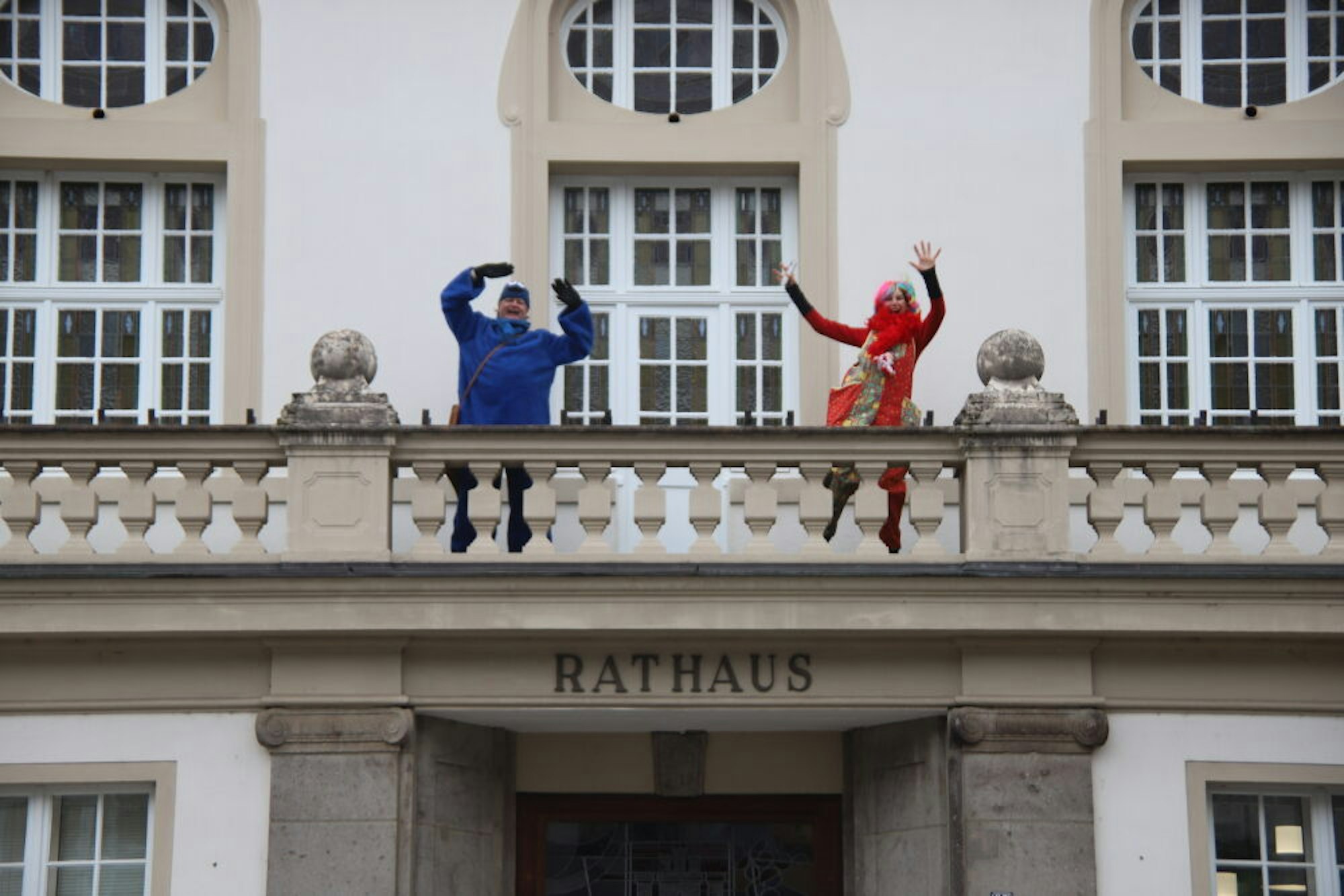 Hennef, alaaf! Stimmung auf dem Balkon des alten Rathauses.