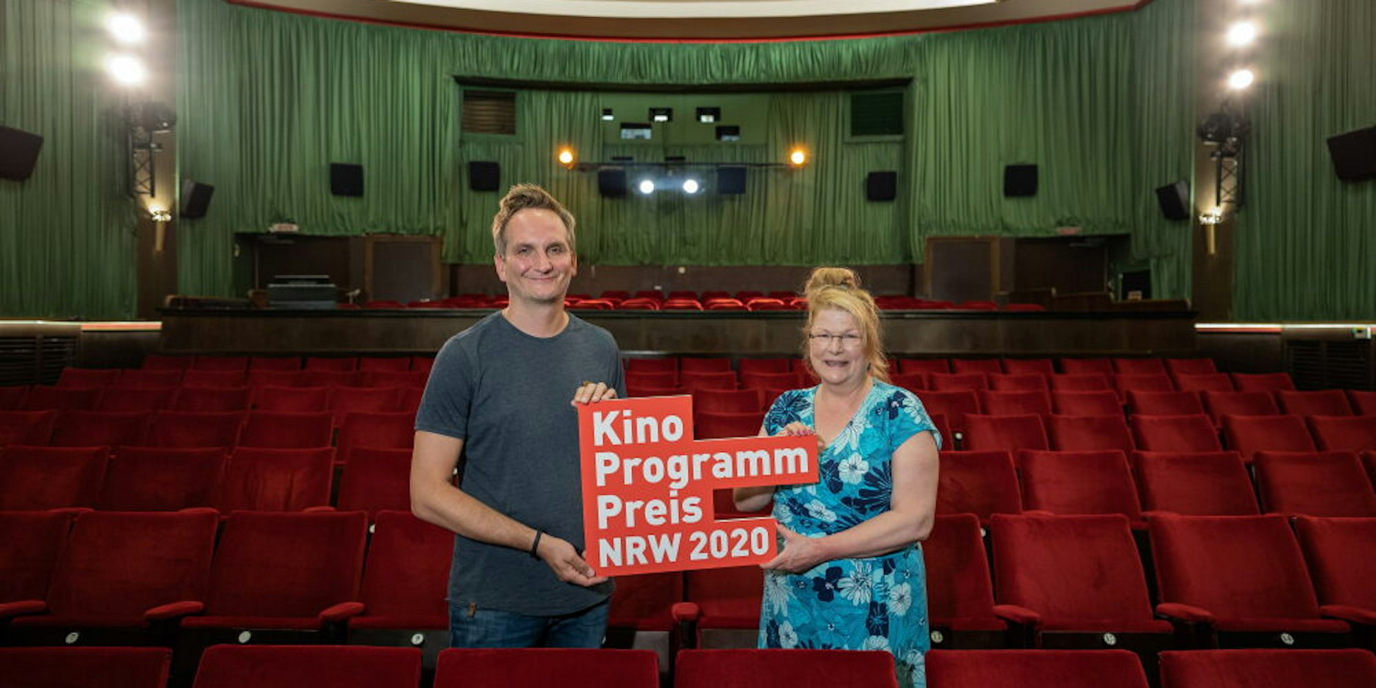 Dr. Daniel Huys und Petra Stratmann freuten sich riesig über die Auszeichnung, die schon zum 16. Mal in Folge an das Kurtheater gegangen ist. Die beiden wählen seit vielen Jahren ehrenamtlich die Filme aus. Die finanzielle Unterstützung ist für das Haus gerade besonders wichtig, musste es doch wegen der Corona-Beschränkungen fast ein halbes Jahr geschlossen bleiben. Seit wenigen Wochen erst sind wieder Vorstellungen im Saal möglich, dank eines ausgeklügelten und mit den Behörden abgestimmten Hygienekonzepts.