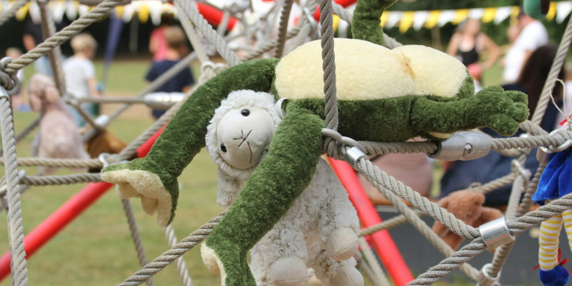 Zum Abschluss der ungewöhnlichen Schnitzeljagd in Allner konnten die Kuscheltiere im Klettergerüst noch einmal bewundert werden.