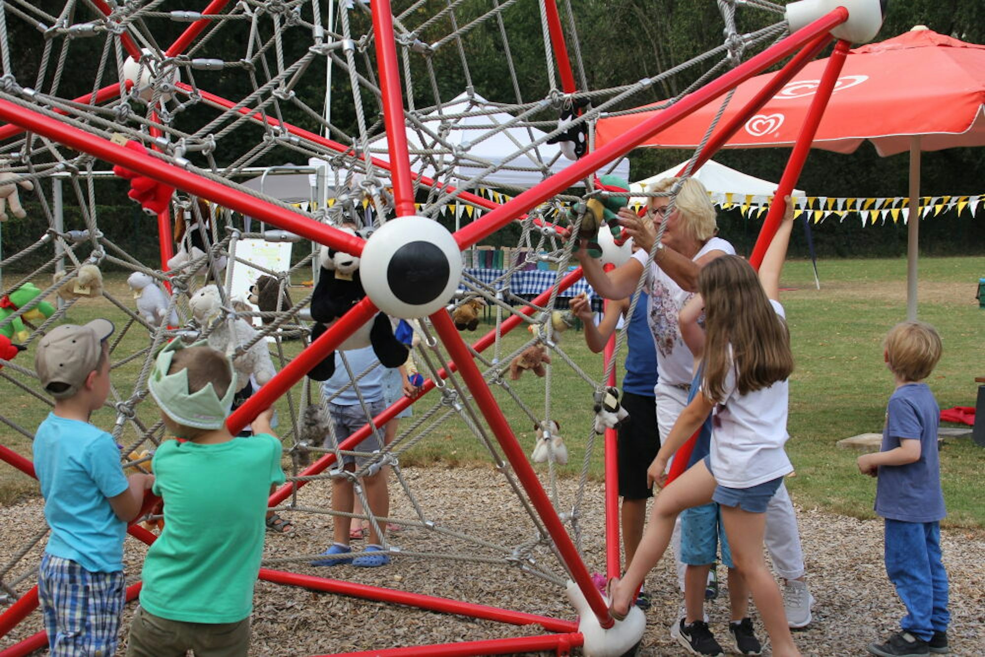 45 kleine Kuscheltier-Experten stürmten mit kleinen und großen Geschwistern stürmten den Platz und nahmen die in einem Klettergerüst eingeparkten Kuscheltiere noch einmal in Augenschein. Brigitte Hopp hatte die Anmeldungen und am ersten Augustsonntag die Listen mit Namen und Verstecken wieder entgegengenommen.