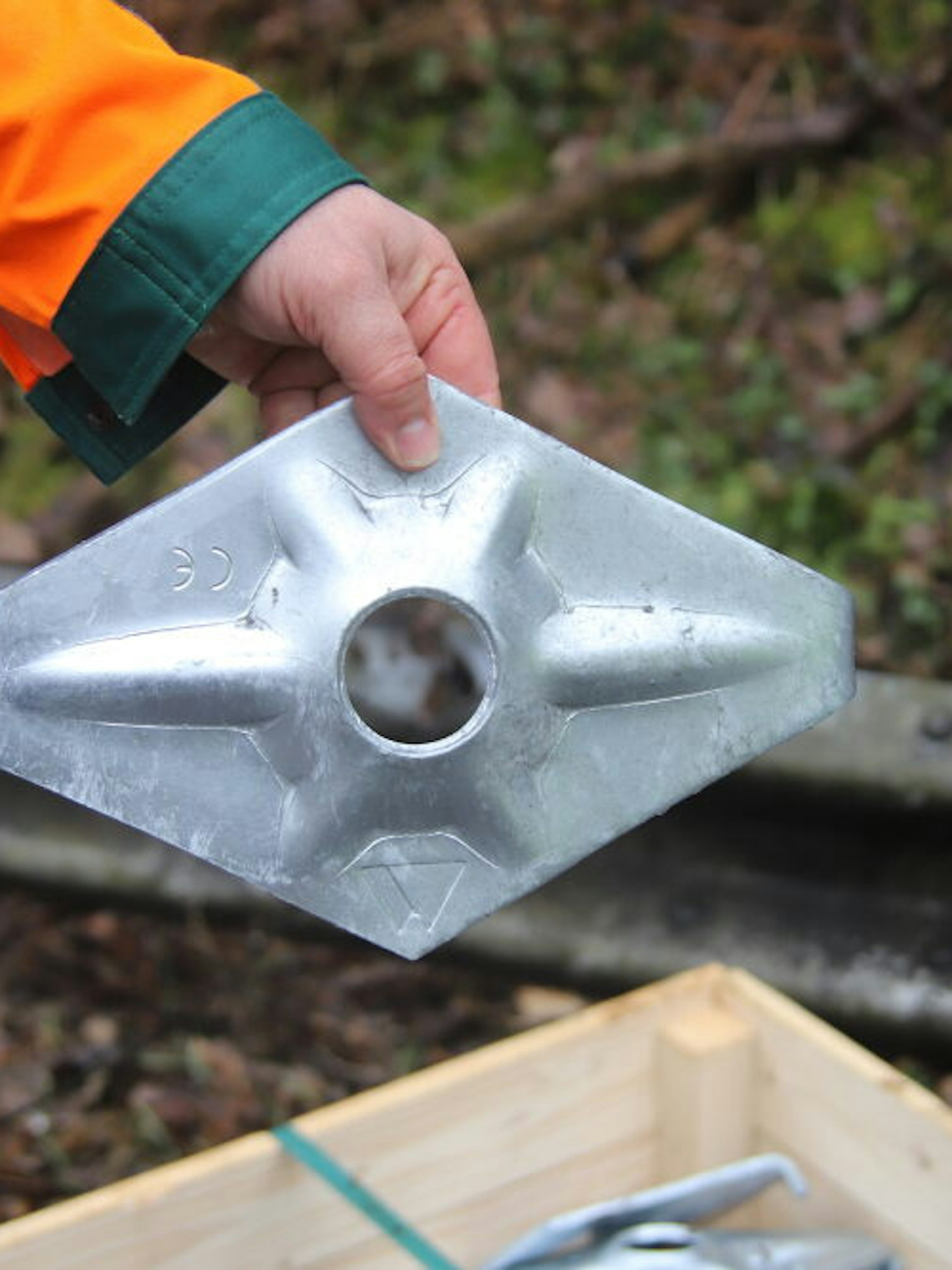 Mit speziellen Platten wird das Stahlnetz befestigt.