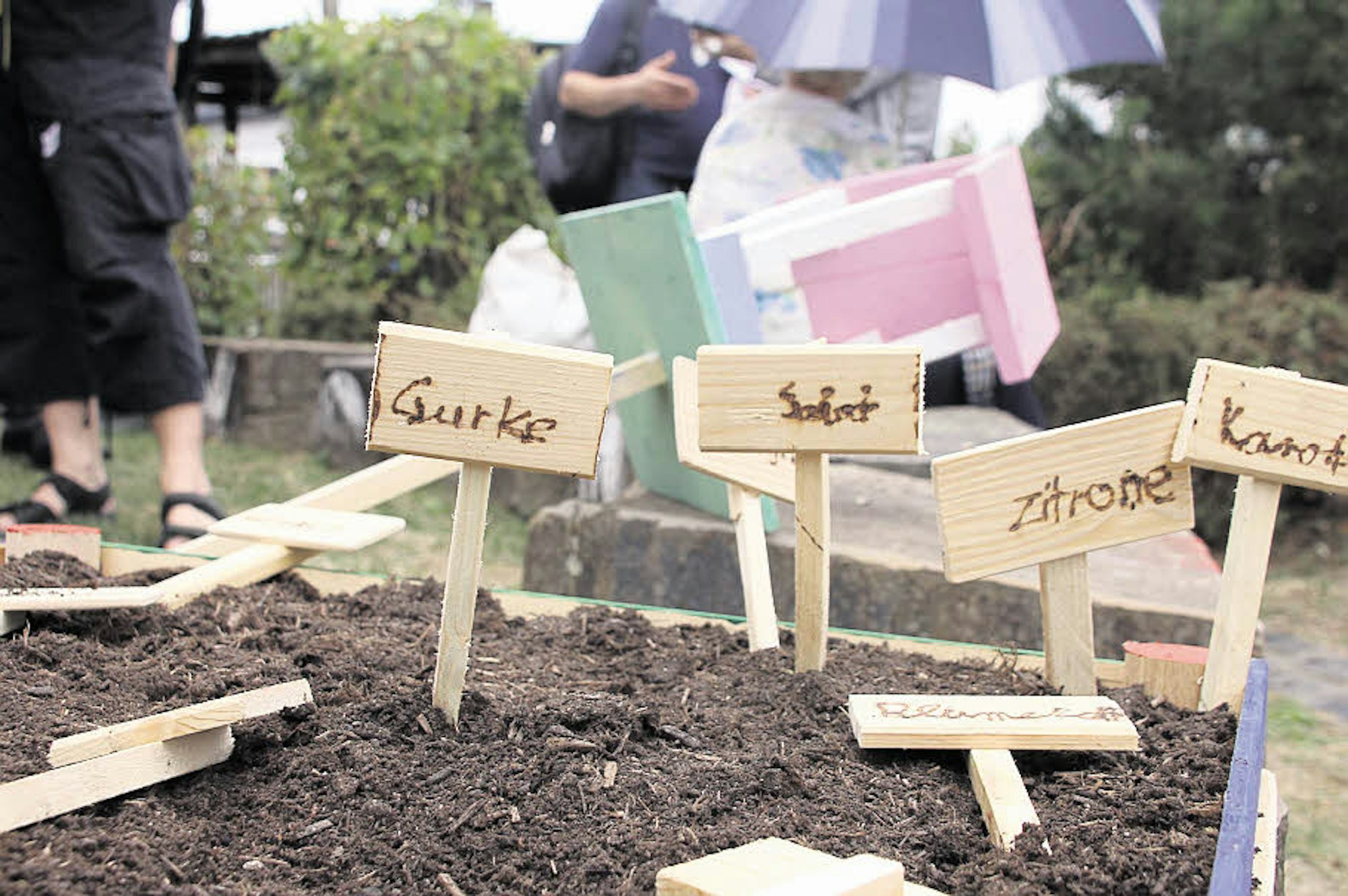 In der Schreinerei produzierten die Mitarbeiter auf Zeit kleine Schilder für den Garten, mit dem Pflanzbeete beschriftet werden können.