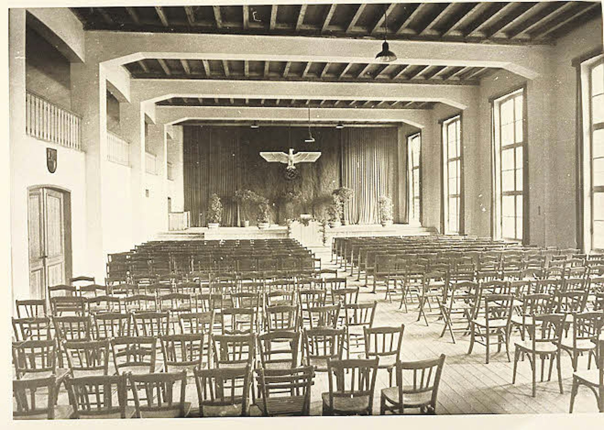 Der Reichsadler über der Bühne: Das heutige Theater war 1938 als Heim für die Hitlerjugend (HJ) gebaut worden.