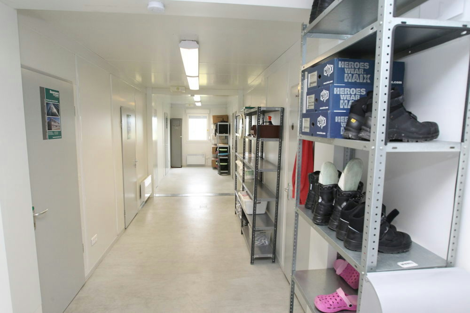 Die Übergangswache auf dem Hügel bei Heckenhof besteht aus 13 zusammengesteckten Containern. Eine Halle für zwei Fahrzeuge mit elektrischen Toren und Schlupftüren kommt in drei Wochen.
