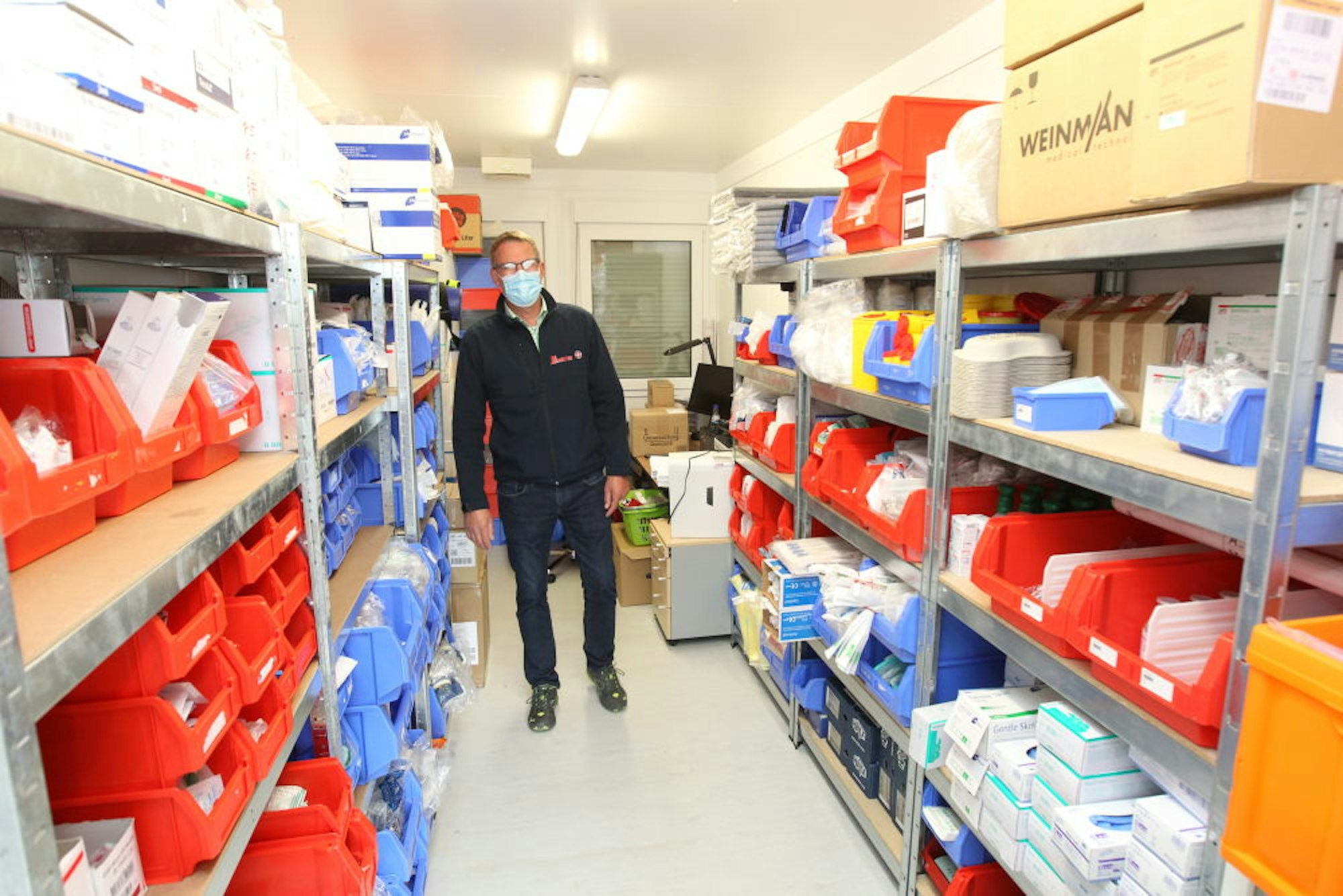 Johanniter-Fachbereichsleiter Ralf Marquardt zeigt den klimatisierten Lagerraum.