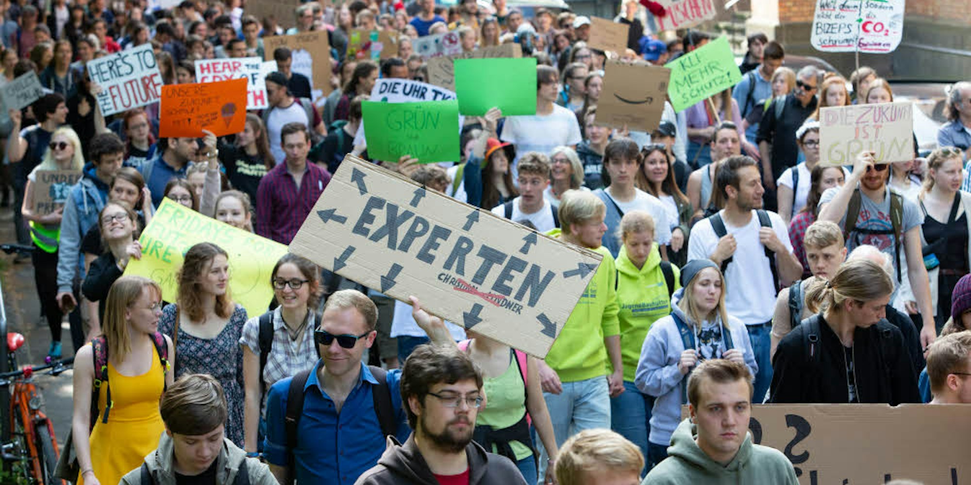 Bonn – Die Europawahl stand bei der „Fridays for Future“-Demonstration diesmal neben dem Klimaschutz besonders im Fokus. Während die Polizei von knapp 3000 vorwiegend jungen Menschen sprach, die am Freitagmorgen durch die Innenstadt zogen, waren es nach Angaben der Veranstalter knapp doppelt so viel.