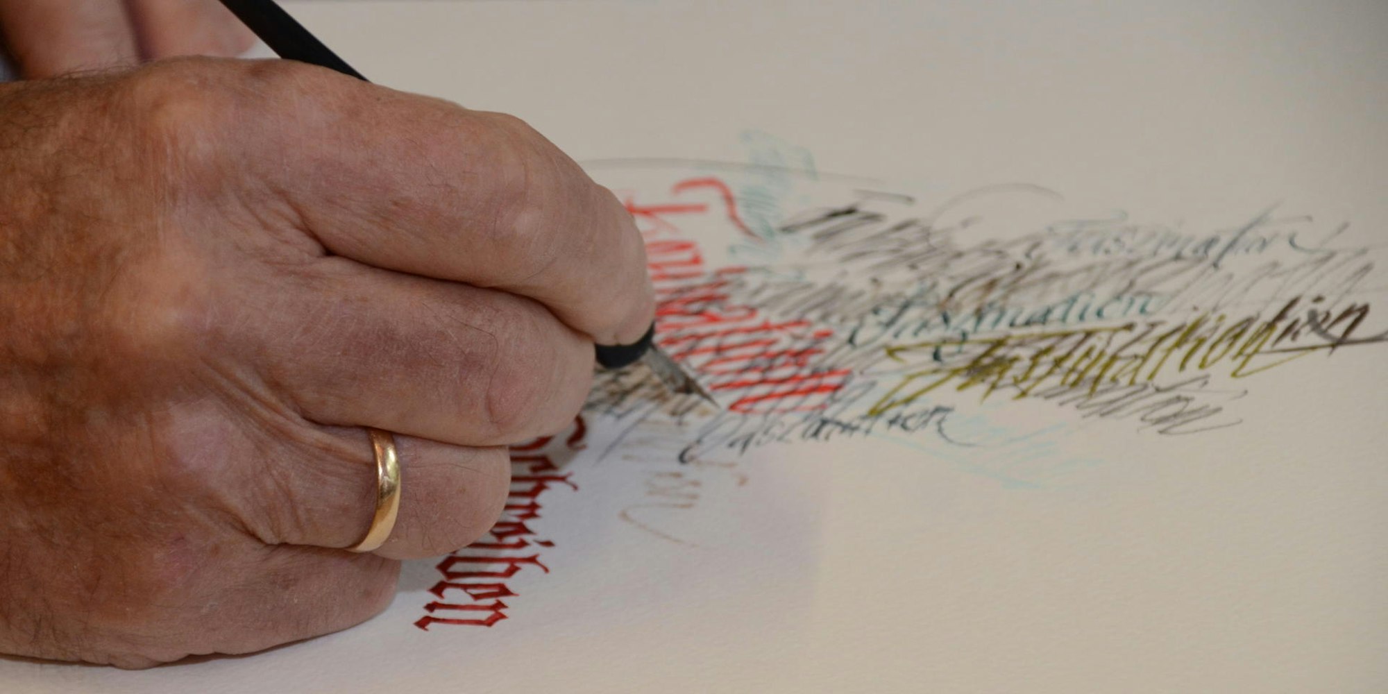- Im Laufe der Zeit entdeckte er dann seine Liebe zur Kalligrafie, der Kunst des Schönschreibens.
