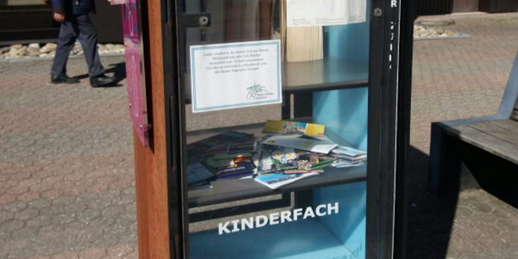 Auch im Kreishaus gucken Bücherfans in die Röhre, denn der Schrank steht im Foyer, und das Haus ist für Besucher einstweilen geschlossen.