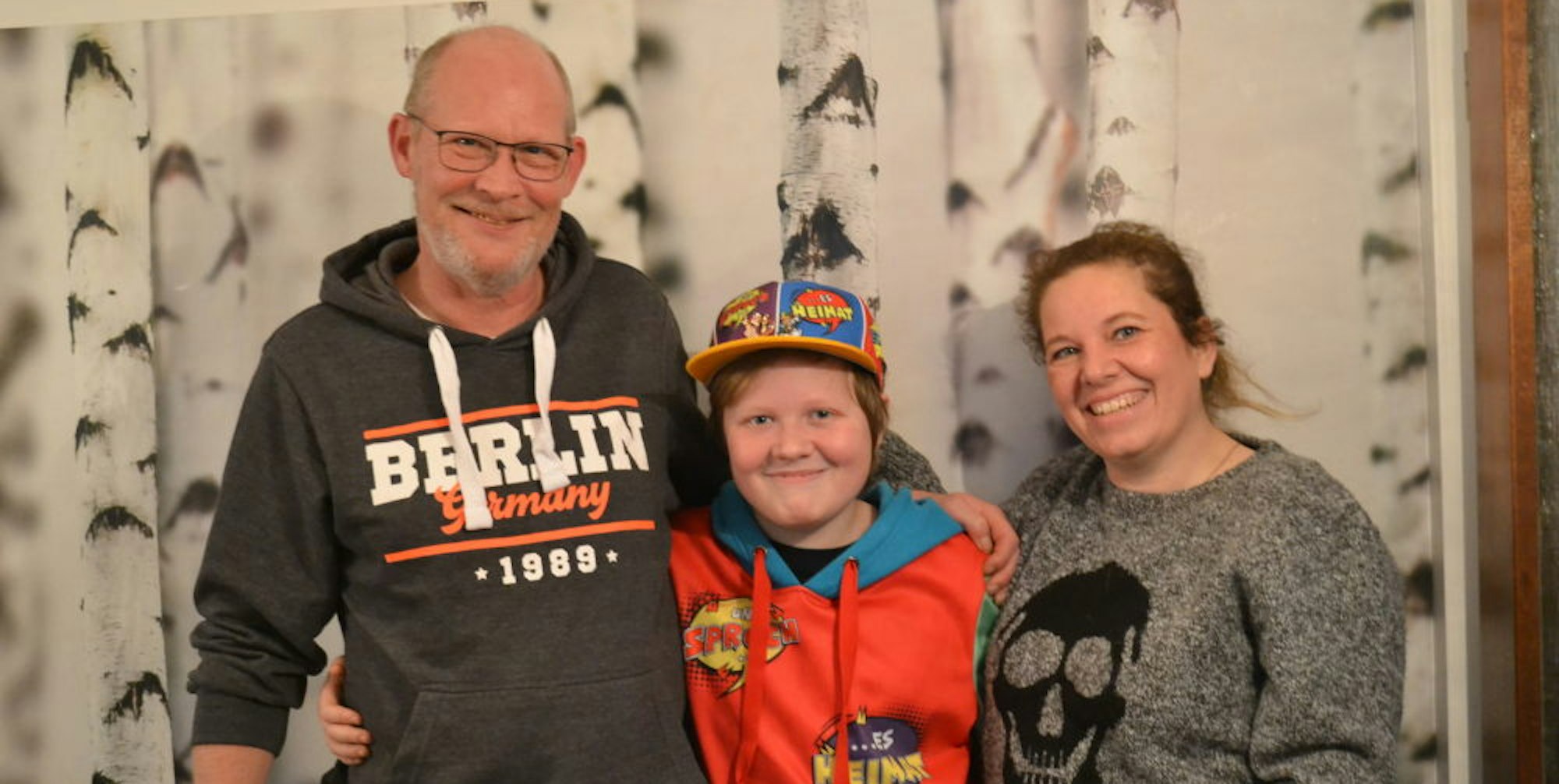 Die Eltern Andreas und Annika Hauser mit ihrem Sohn Dennis. „Er war schon immer eine Rampensau“, sagt seine Mutter über ihn.