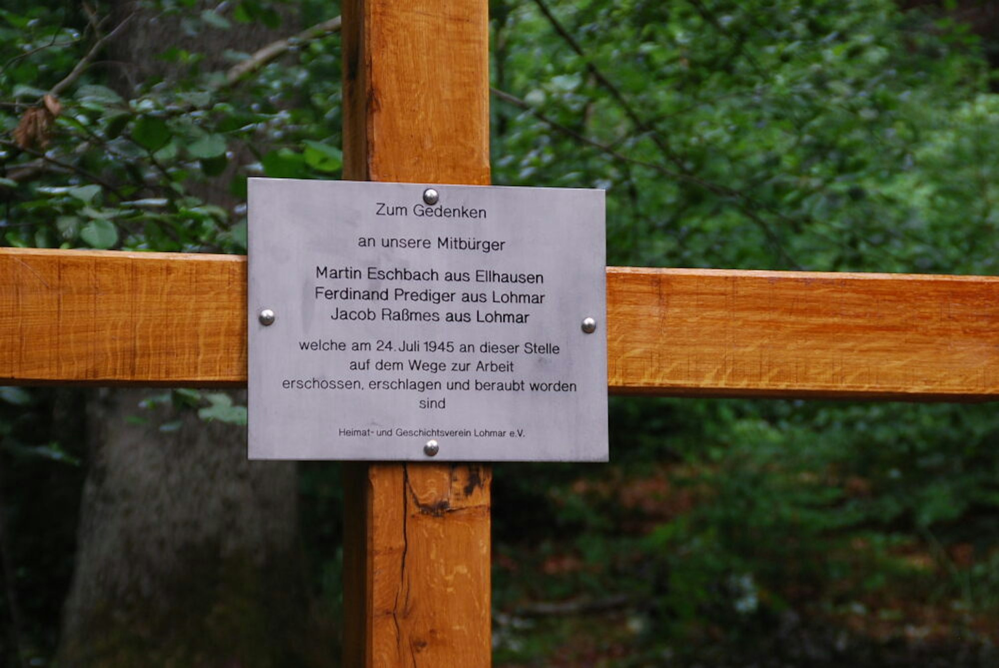 Die Täter wurden nie zur Rechenschaft gezogen, auf dem Kreuz findet sich kein Hinweis, durch wessen Hand Eschbach, Prediger und Raßmes ums Leben kamen. Heimathistoriker Gerd Streichardt hat den Fall recherchiert: Vermutlich waren es ehemalige Zwangsarbeiter. Dass etliche von den in der Kriegszeit ausgebeuteten und drangsalierten Osteuropäern nach Kriegsende „Banden“ bildeten und marodierend übers Land zogen, davon konnten Zeitzeugen wie der kürzlich gestorbene Erwin Henseler berichten.