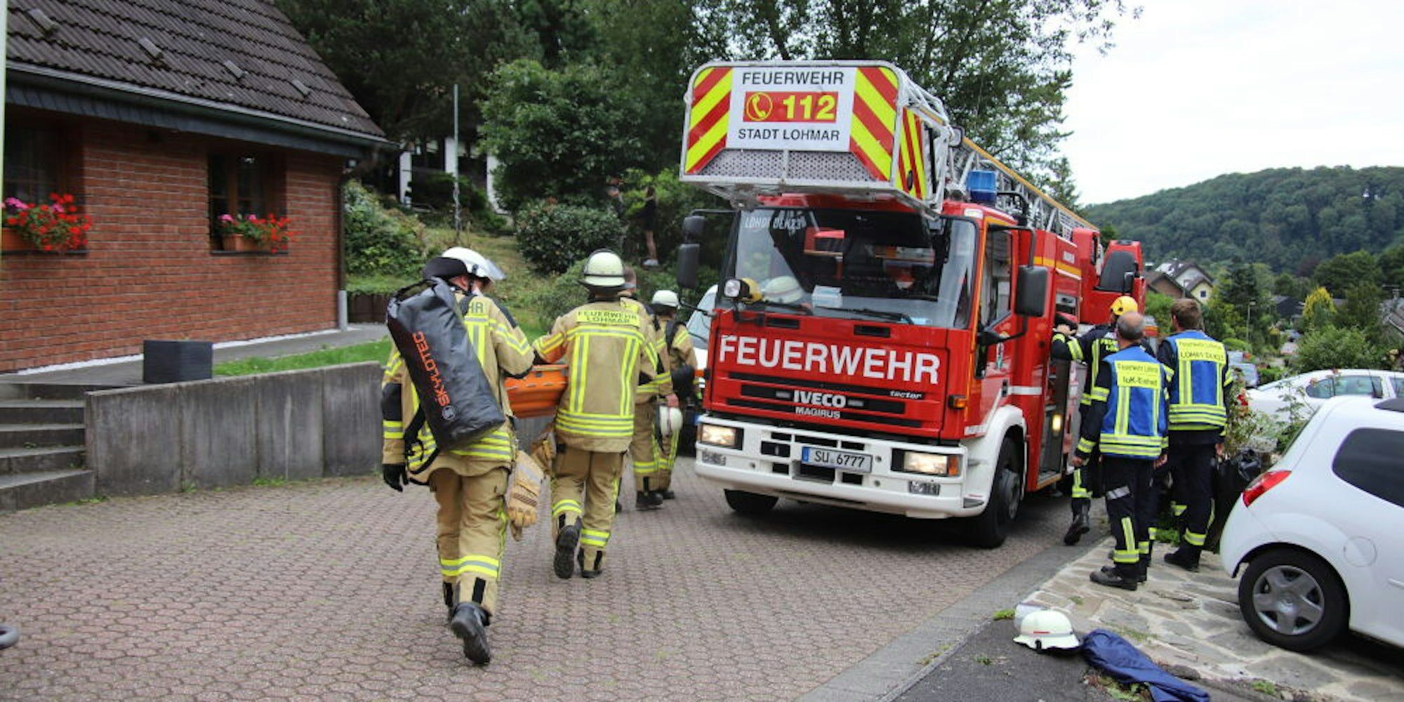 Andere Zeugen alarmierten sofort die Rettungskräfte, weil schnell klar war, dass der 22-Jährige nicht mehr ohne weitere Hilfe nach oben geschafft werden konnte. Feuerwehr, Rettungsdienst, Notarzt und Polizei fuhren über die Bundesstraße 484 nach Neuhonrath, Minuten lang folgte Fahrzeug auf Fahrzeug.