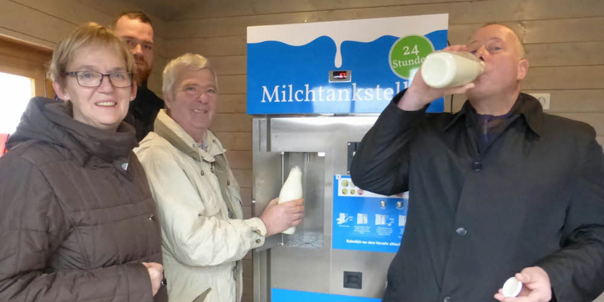 Wohl bekommt’s! Am Zapfautomat (von links) die Bauern Marlis, Thomas und Heribert Höck mit Vizebürgermeister Guido Koch.