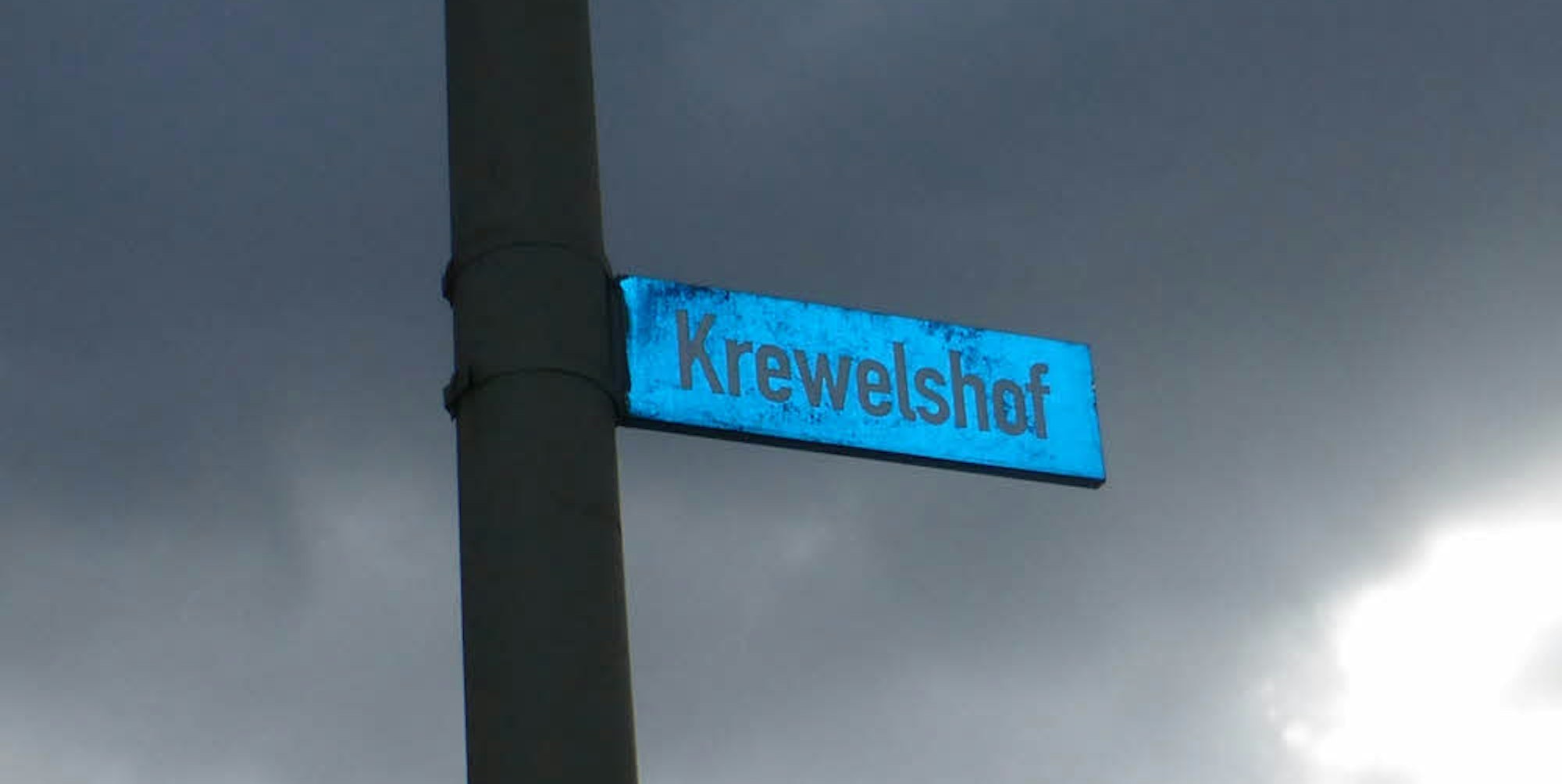 Als Krewelshof wird die Zufahrt allerdings schon seit dem Jahr 2003 bezeichnet, und so steht es auch auf einem Straßenschild am Abzweig von der L 288. Es ist aber nicht der offiziell vom Stadtrat zu vergebende Name. Das Schild hängt dort bisher nur wegen der Navigation für Rettungsdienste, aber auch für Besucher. Es muss nun ausgetauscht werden.