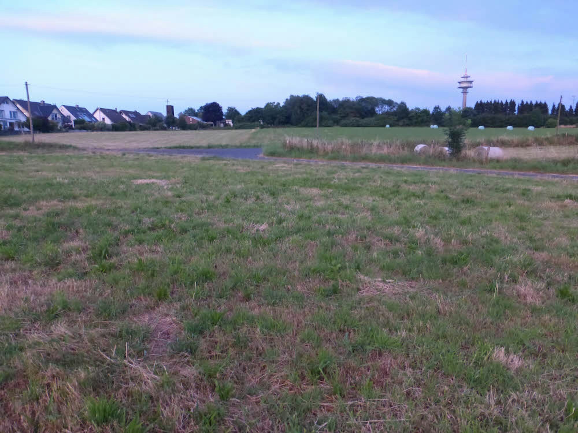 148 Wohneinheiten sollen am südöstlichen Ortsrand von Birk entstehen, beidseits des heutigen Wirtschaftsweges auf der grünen Wiese in Sichtweite des Birker Fernmeldeturms (r.).