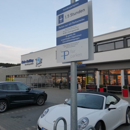 Der Parkplatz bei Edeka in Lohmar.