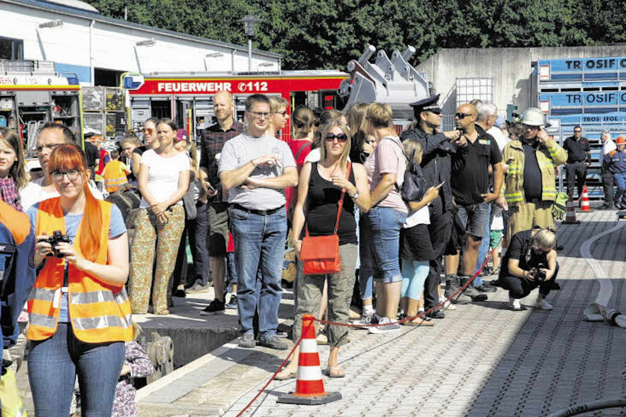 Zahlreiche Schaulustige fotografieren und filmen die Szenerie, Eltern, Großeltern, Verwandte und Freunde. An diesem Tag ist Gaffen ausdrücklich erwünscht. Die 24-Stunden-Aktion kurz vor der Sommerpause ist Übung und Abenteuer zugleich für die Kinder und Jugendlichen. Sie sperren die Einsatzstelle ab, rollen die Schläuche aus, legen eine Leitung zum nächsten Hydranten. Ein Trupp schlüpft in neonorangefarbene Spezialanzüge, zieht Rundum-Kapuzen mit Sichtschutz über die Helme, stapft zu einem Fass, aus dem eine Flüssigkeit rinnt – die Breidter sind mit ihrem neuen ABC-Gerätewagen auf Chemieunglücke spezialisiert.